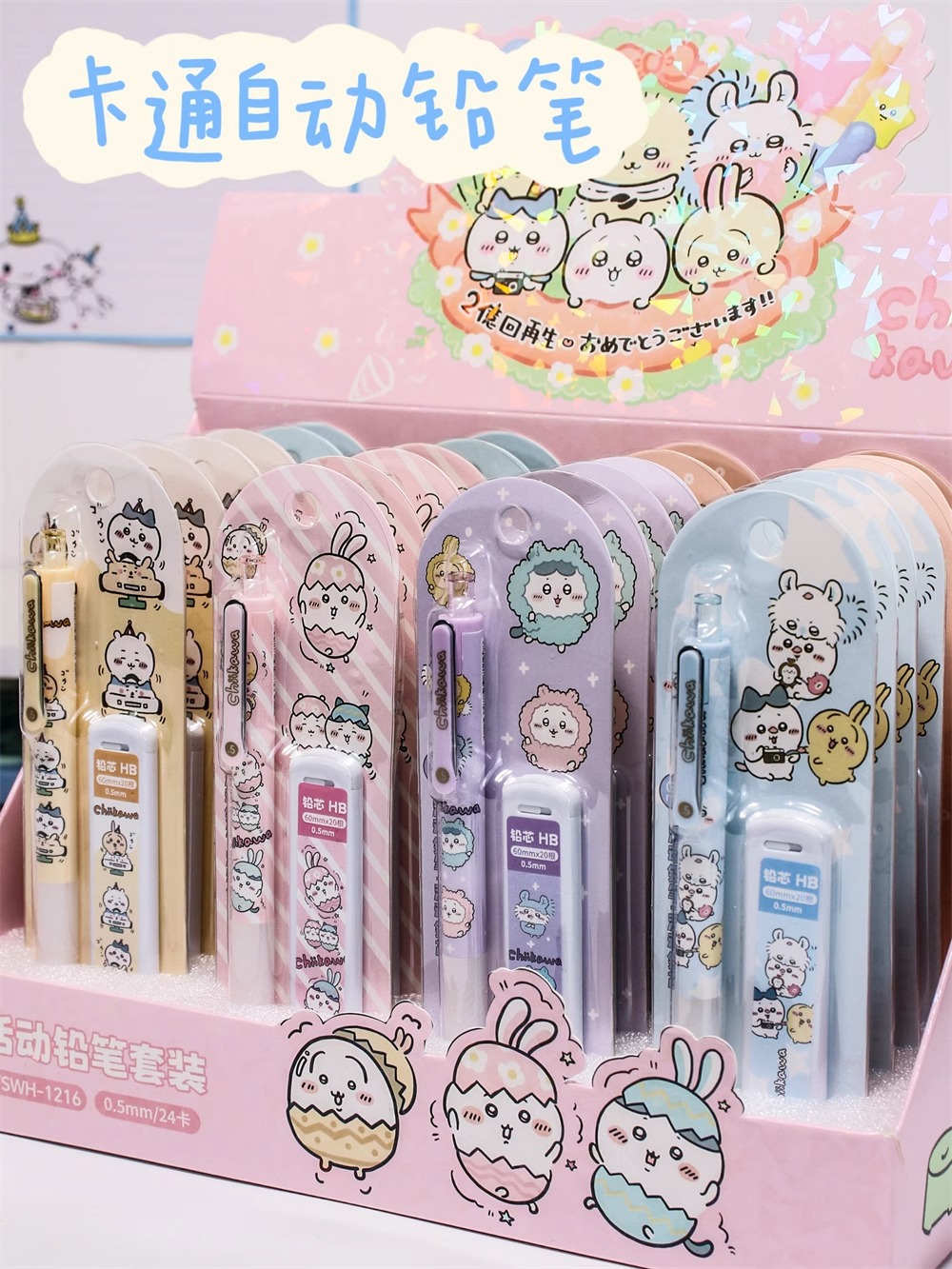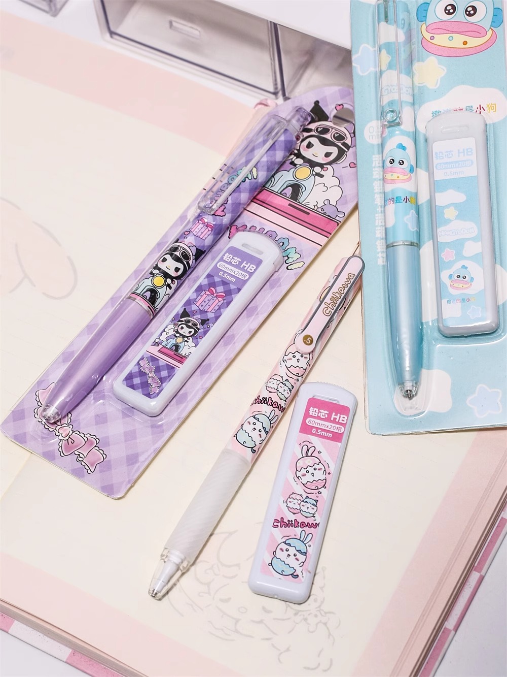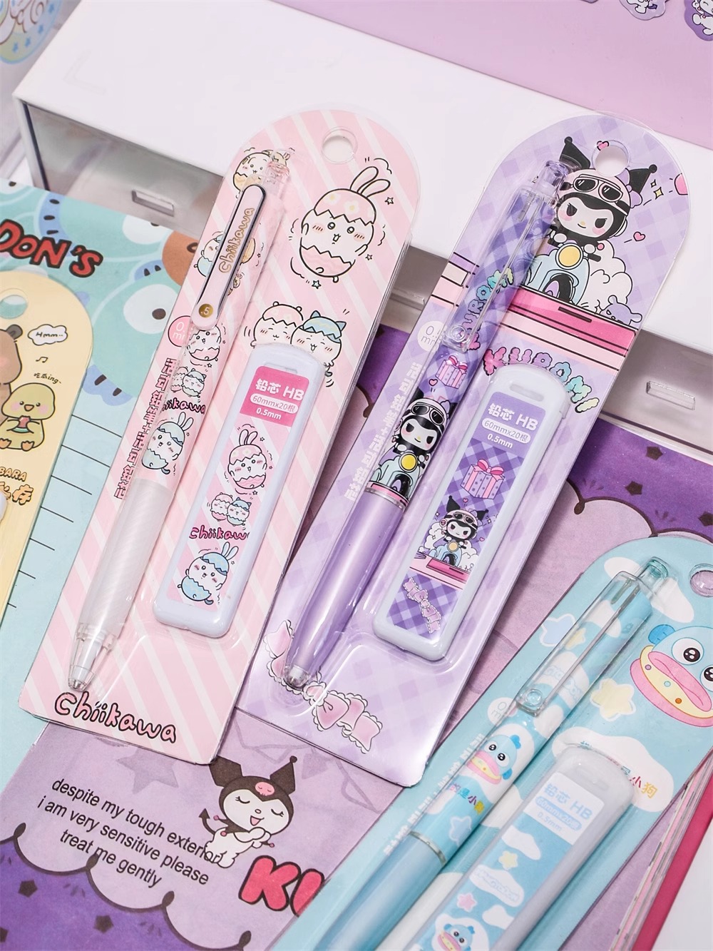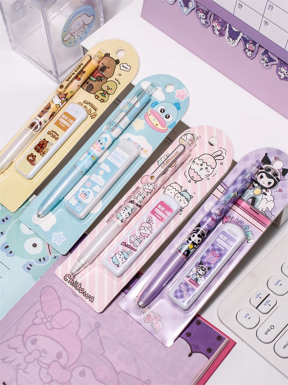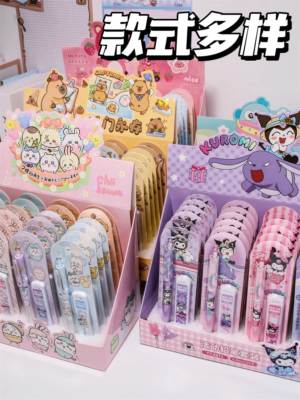 교체 코어 자동 연필 0.5mmHB Kulomi 학생 프레스 펜 유구이 개 못생긴 물고기 문구 상자가있는 카드 팩스토어 가기