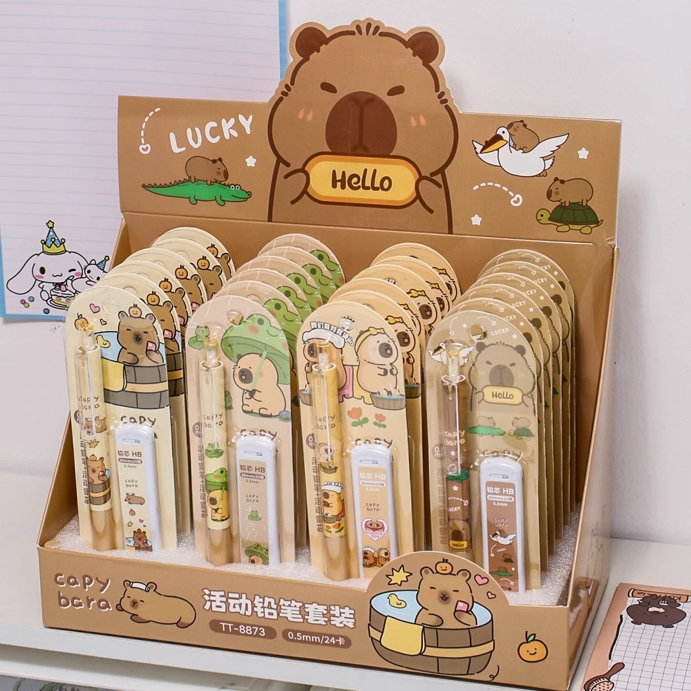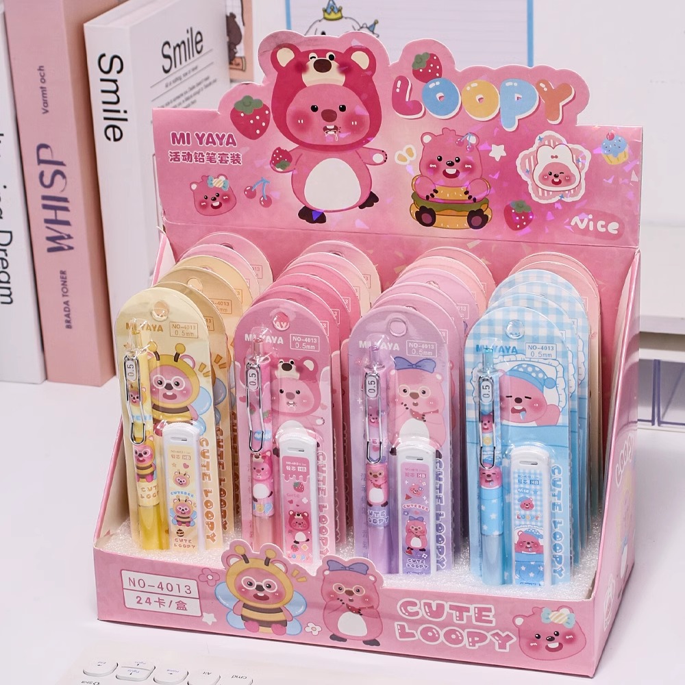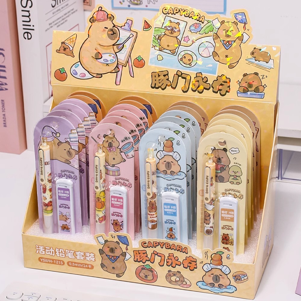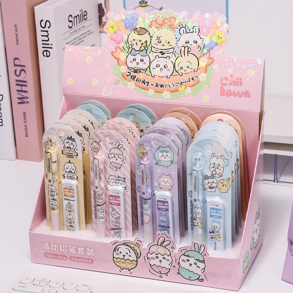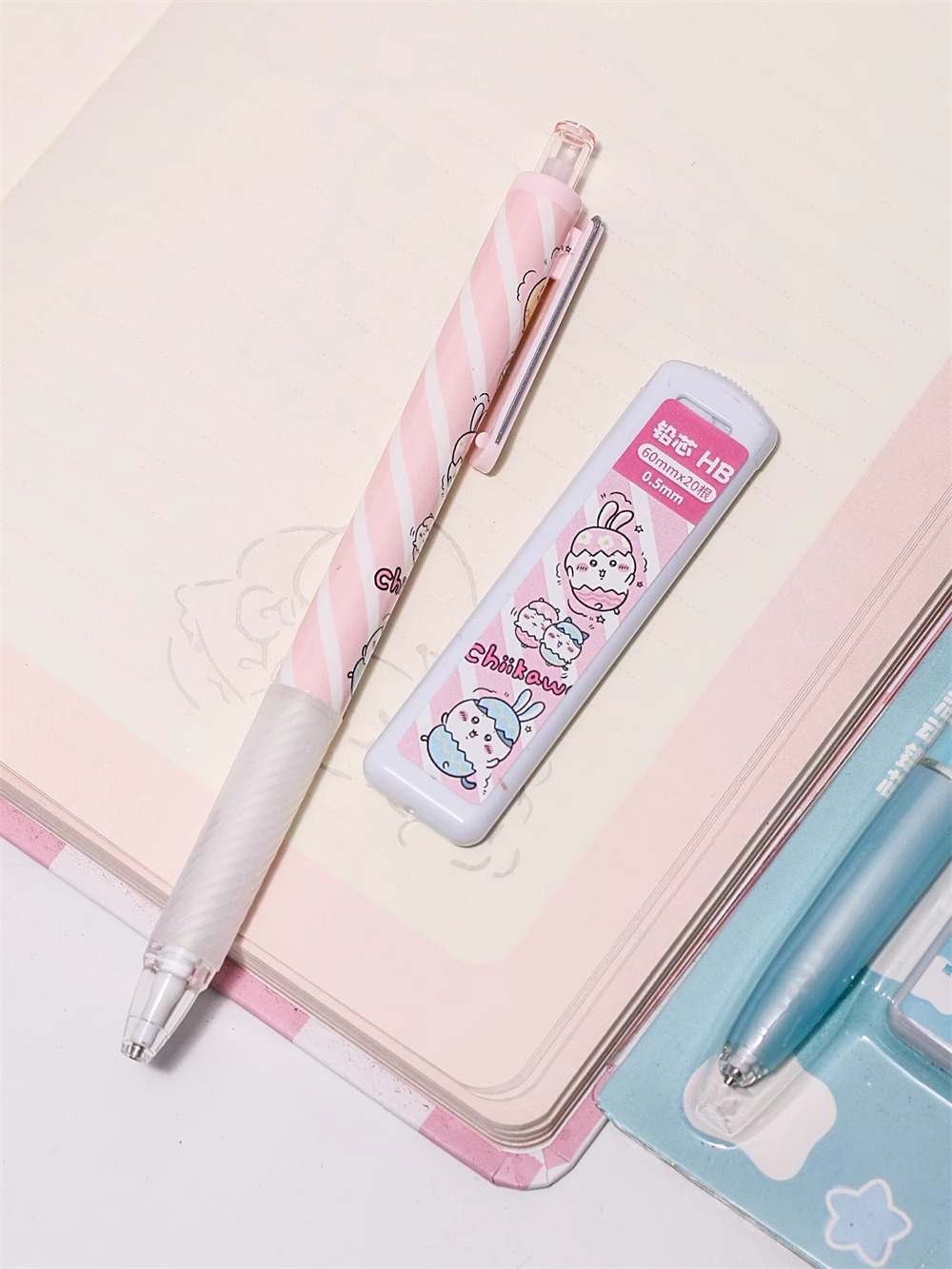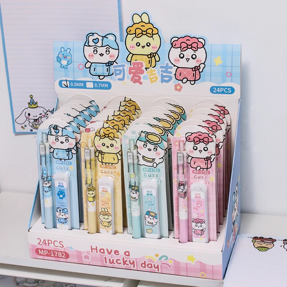 교체 코어 자동 연필 0.5mmHB Kulomi 학생 프레스 펜 유구이 개 못생긴 물고기 문구 상자가있는 카드 팩스토어 가기