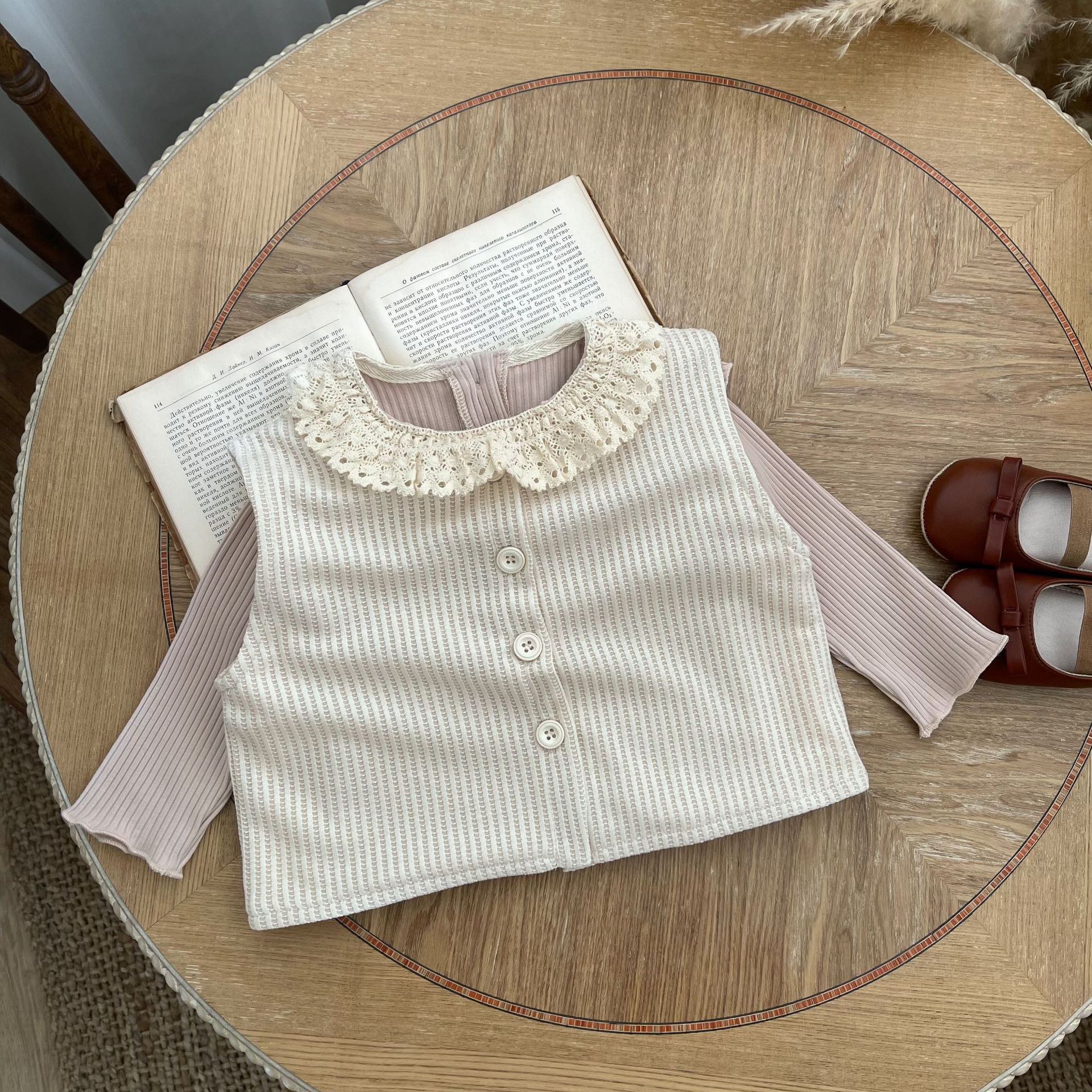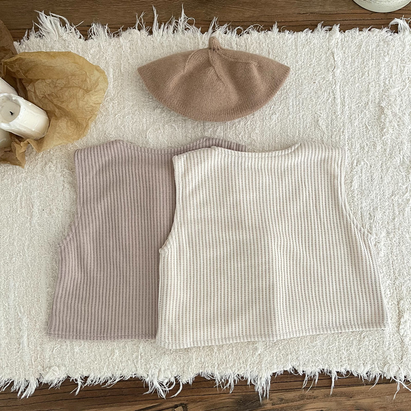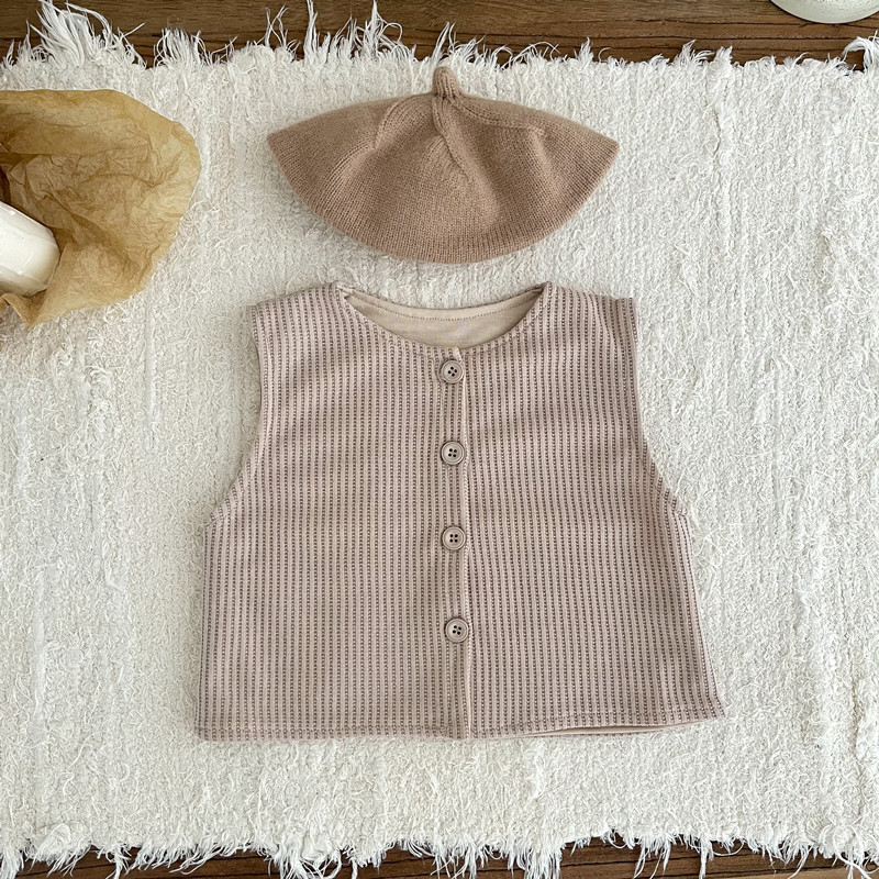 INS 가을과 겨울 아기 소년 소녀를위한 작은 격자 무늬 민소매 조끼 아기 더블 레이어 간단한 단일 가슴 조끼