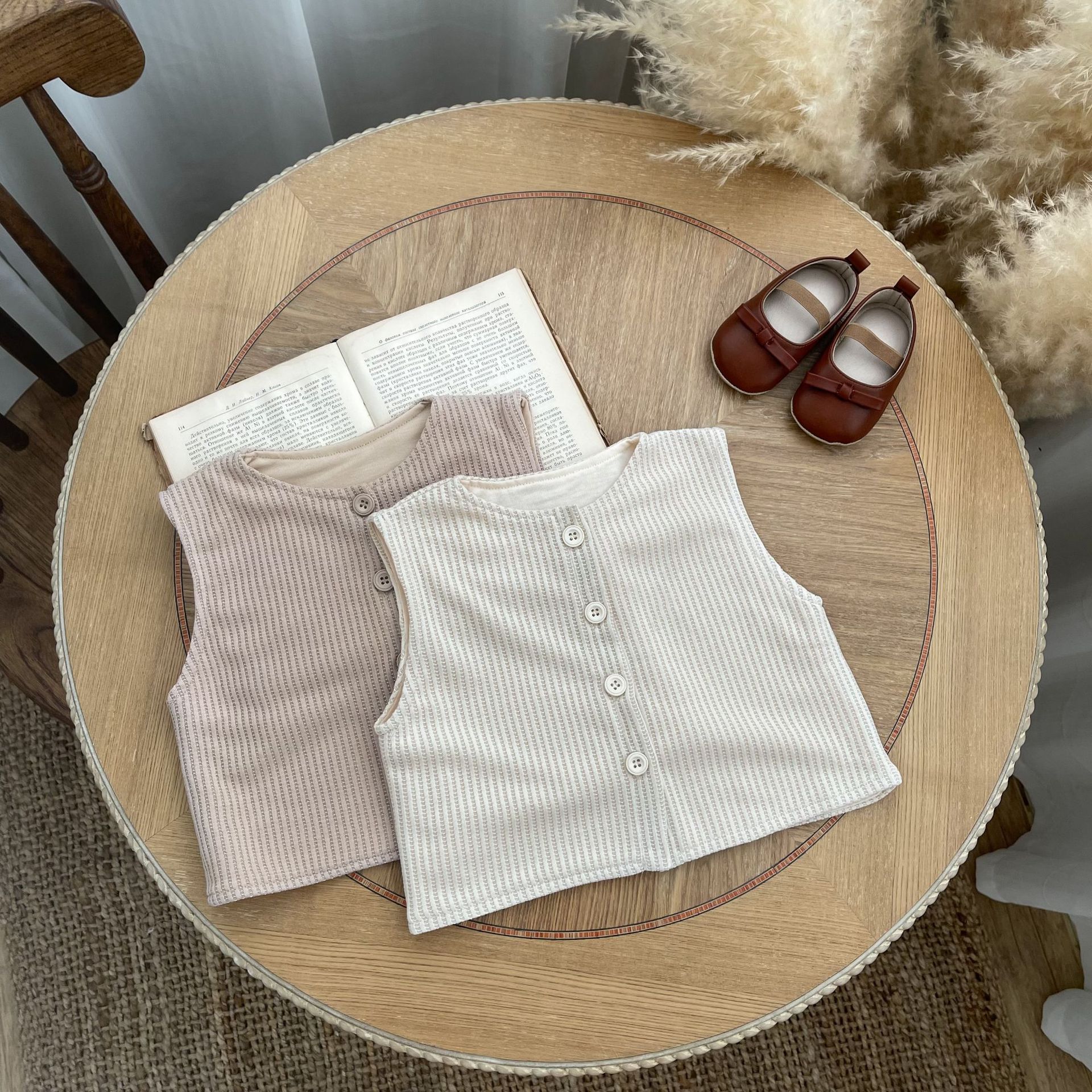 INS 가을과 겨울 아기 소년 소녀를위한 작은 격자 무늬 민소매 조끼 아기 더블 레이어 간단한 단일 가슴 조끼스토어 가기
