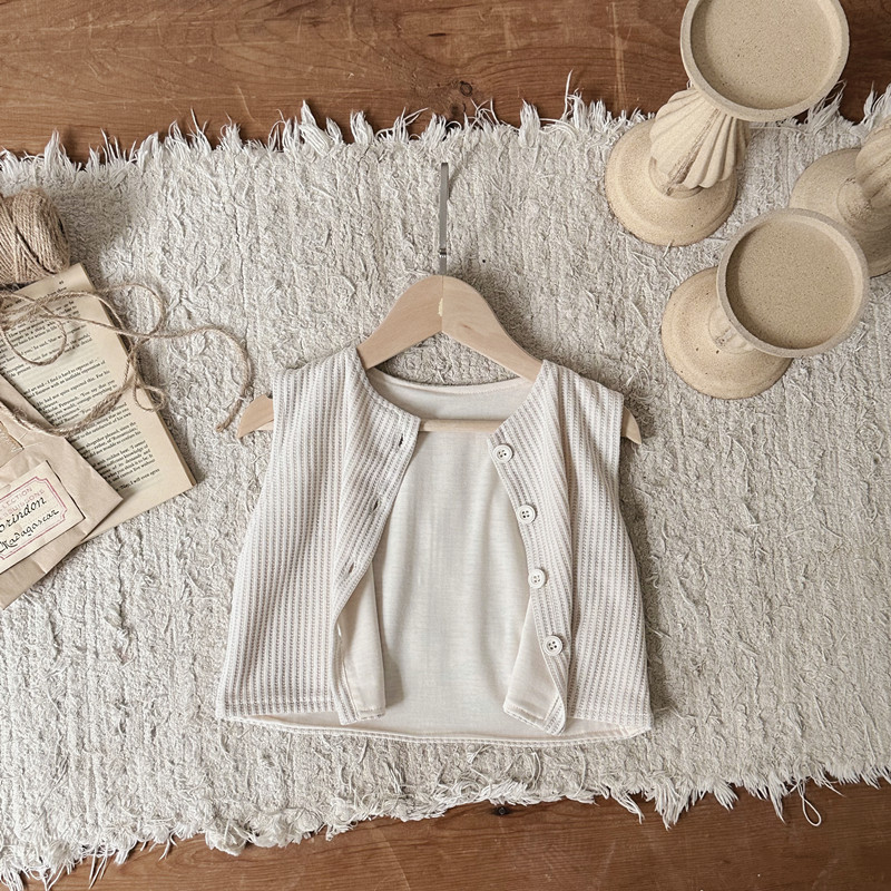• 베이지색 작은 격자 무늬 더블 레이어 싱글 브레스트 조끼