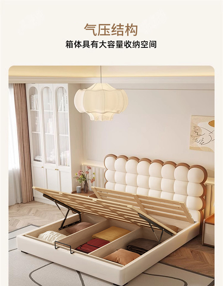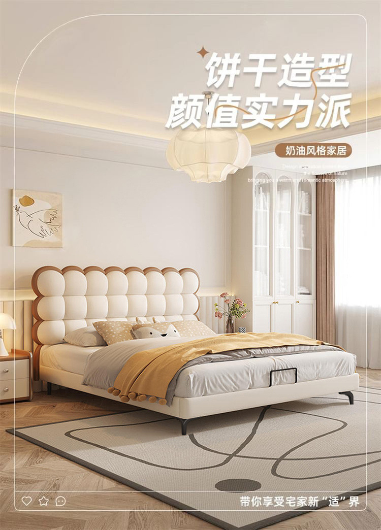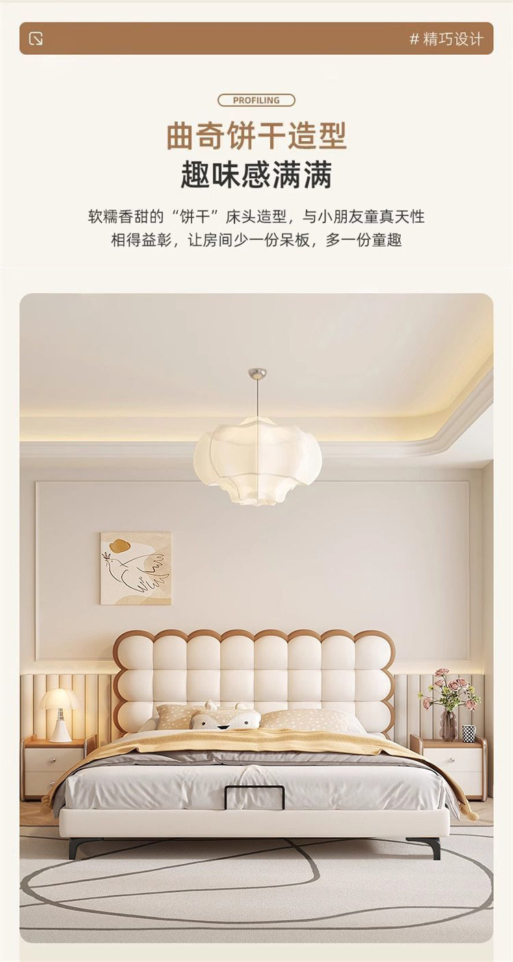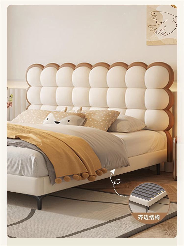 2025 새로운 미국 스타일 쿠키 침대 어린이 침대 소년과 소녀 크림 스타일 가죽 침대 퍼프 소프트 백 인터넷 유명 공주스토어 가기