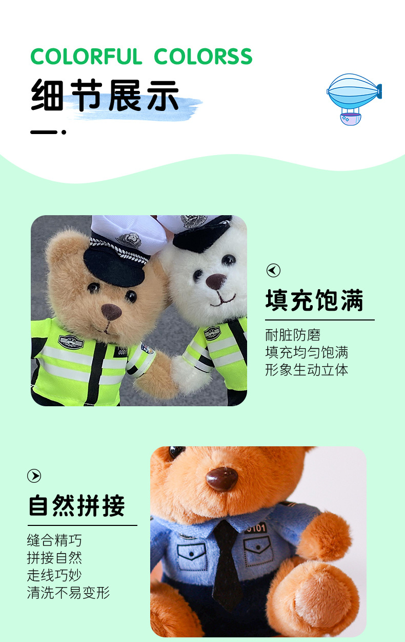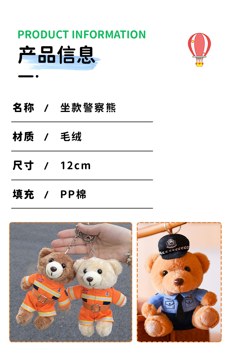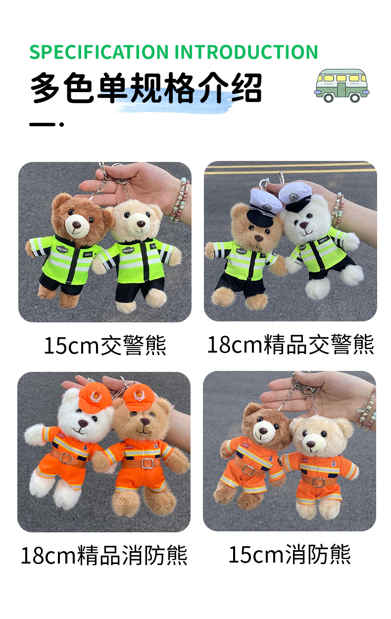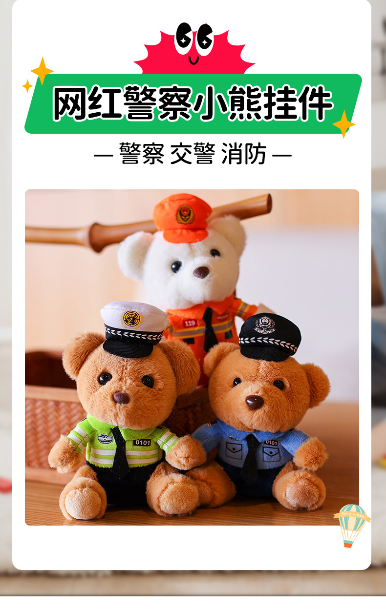 공장 재고 도매 교통 경찰 곰 펜던트 인형 책가방 펜던트 인형 스몰 사이즈 경찰 봉제 불 곰