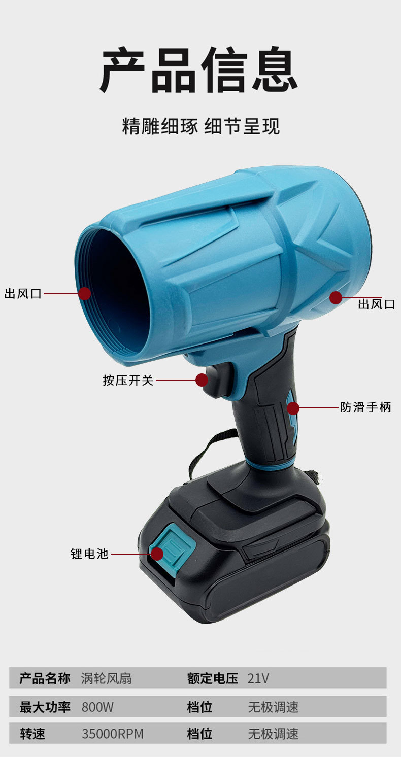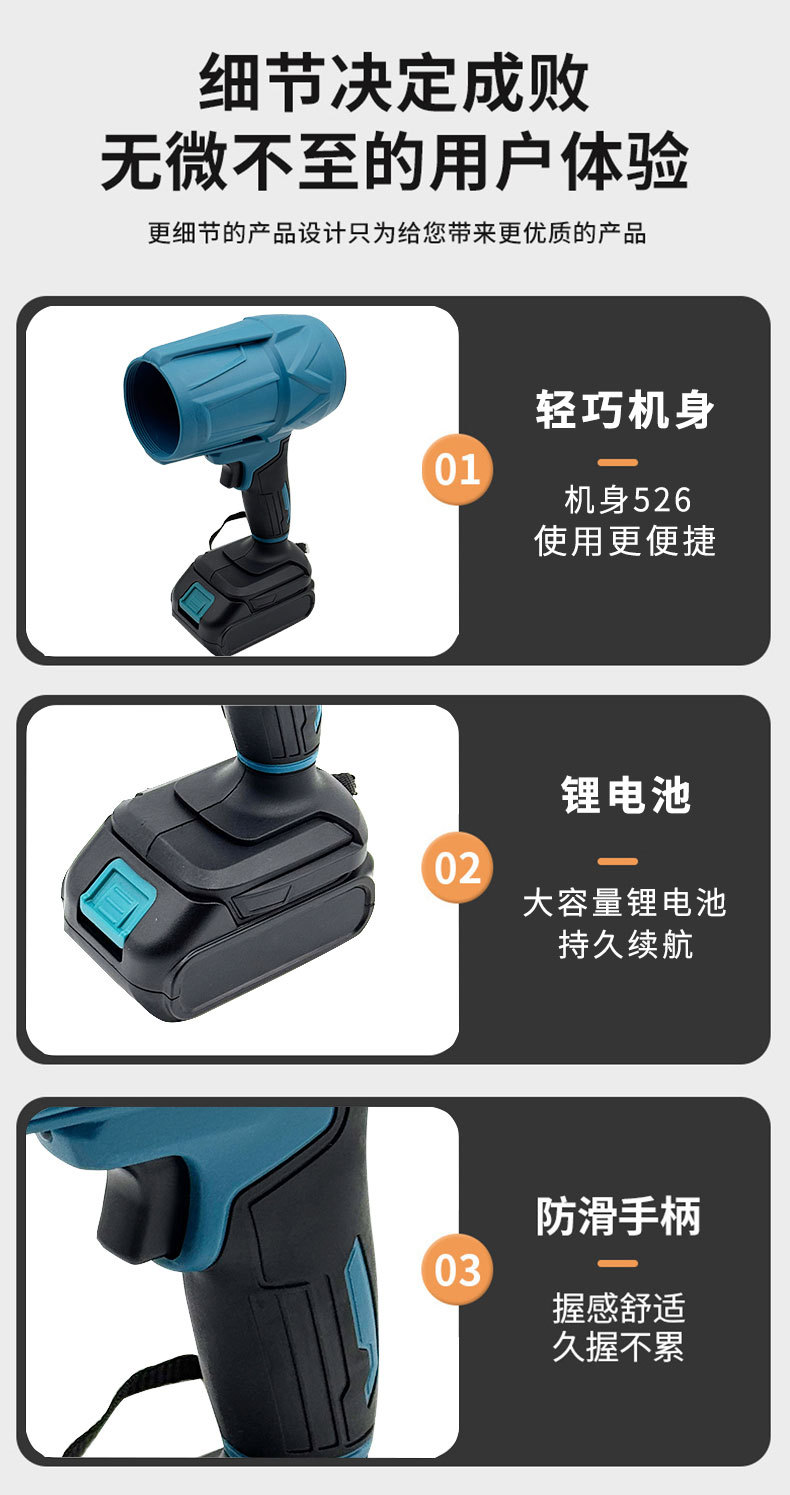 리튬-전기 폭력 헤어 드라이어 먼지 제거 및 제설 고출력 터빈 송풍기 낙엽 폭풍 기계