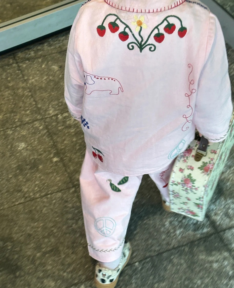 • 라이트 핑크 호랑이 자수 바지 [재고 있음]