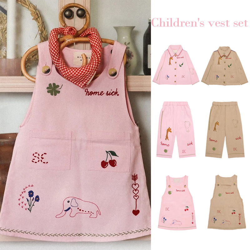 재고! 어린이 원피스 2025 여름 소녀 자수 만화 조끼 원피스 소녀 만화 재킷 세트