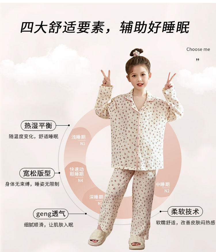 소녀 잠옷 봄과 가을 새로운 어린이 꽃 카디건 서양식 캐주얼 편안한 홈 의류 세트 Huzhou Zhili스토어 가기