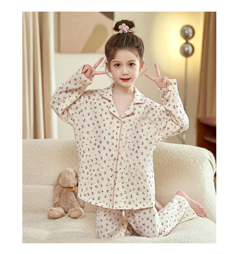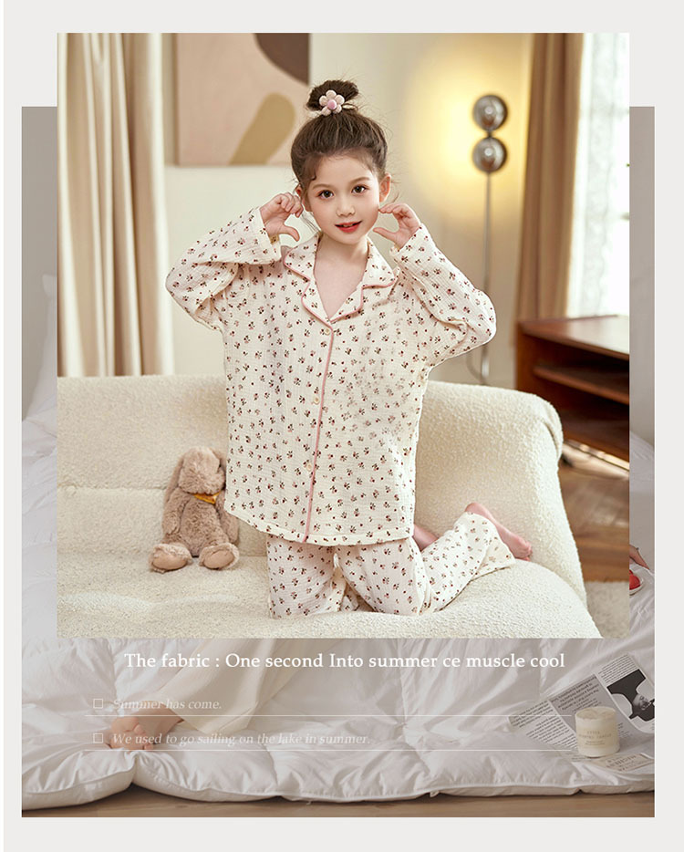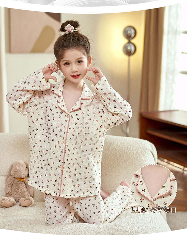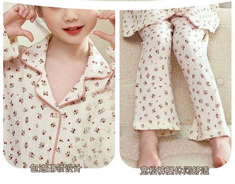 소녀 잠옷 봄과 가을 새로운 어린이 꽃 카디건 서양식 캐주얼 편안한 홈 의류 세트 Huzhou Zhili