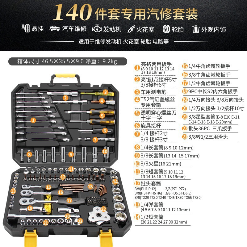 • [45치 대형 플라이, 중형 플라이, 소형 플라이 고품질 혼 톱니 래칫] 소켓 렌치 140개