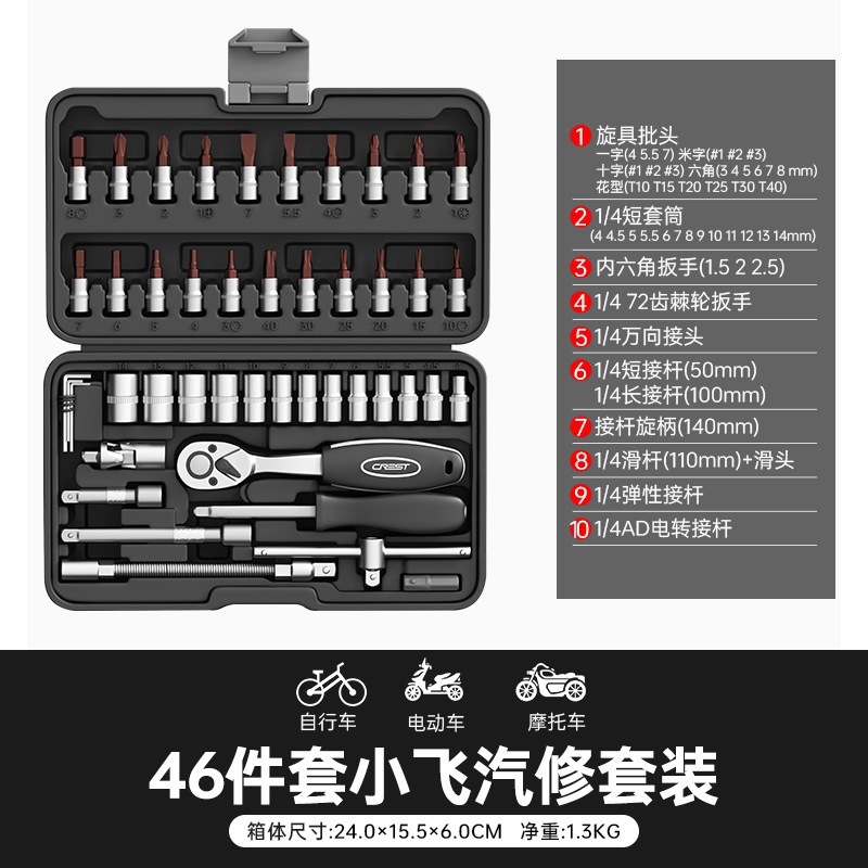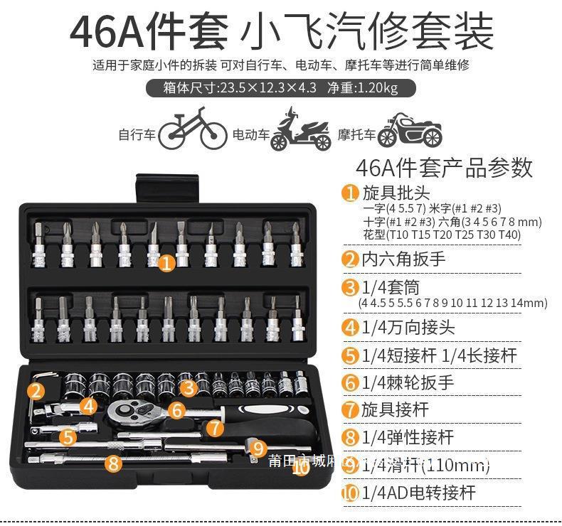 • [72톱니 소형 플라이 곡선 핸들 래칫] 46피스 소켓 세트