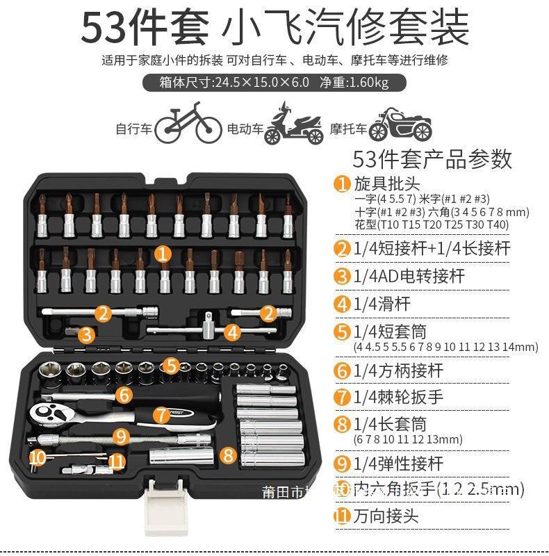 • [72톱니 소형 플라이 곡선 핸들 래칫] 소형 플라이 소켓 53개 세트