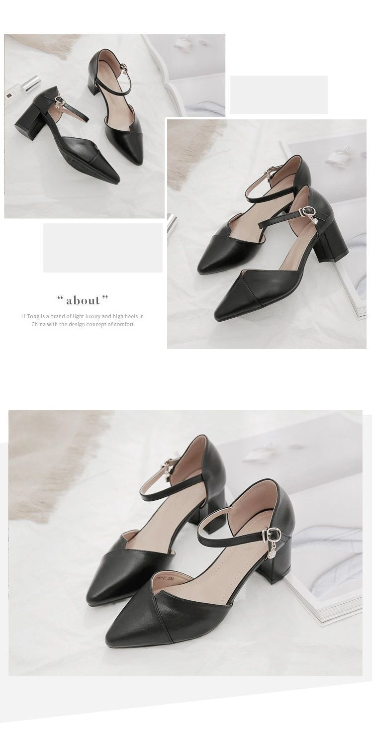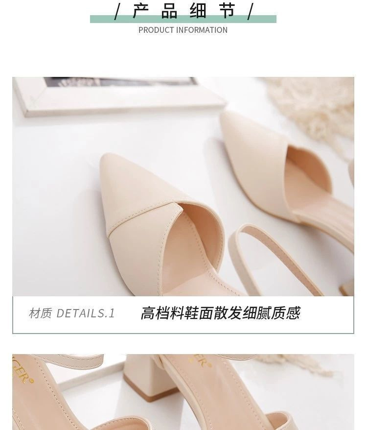 속이 빈 샌들과 여름 한 단어 여성의 2025 새로운 요정 스타일 뾰족한 패션 하이힐 두꺼운 뒤꿈치 신발 도매스토어 가기