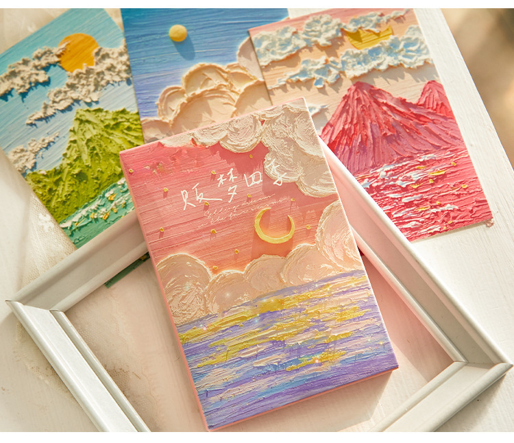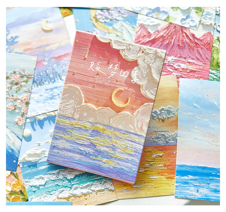 엽서 바람 유화 낭만적 인 인사말 카드 메시지 그림 작은 카드 손 계정 소재 생일 여성 도매
