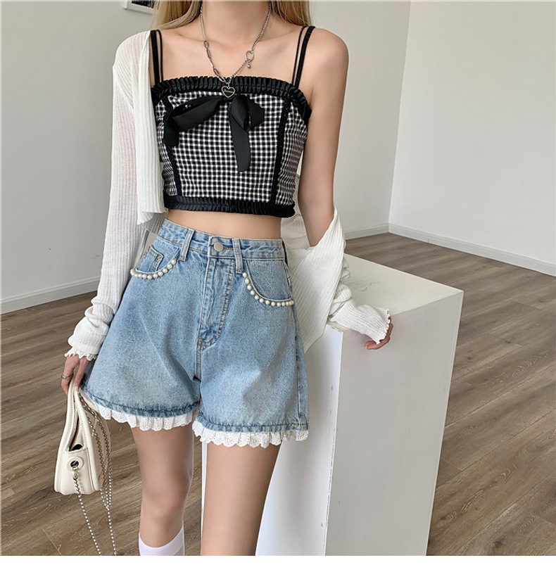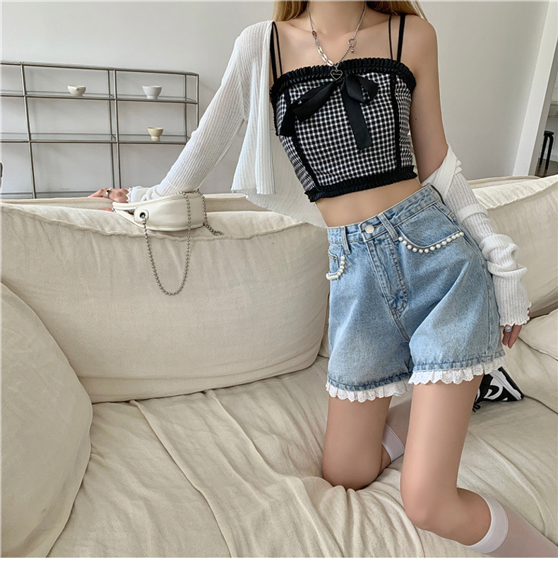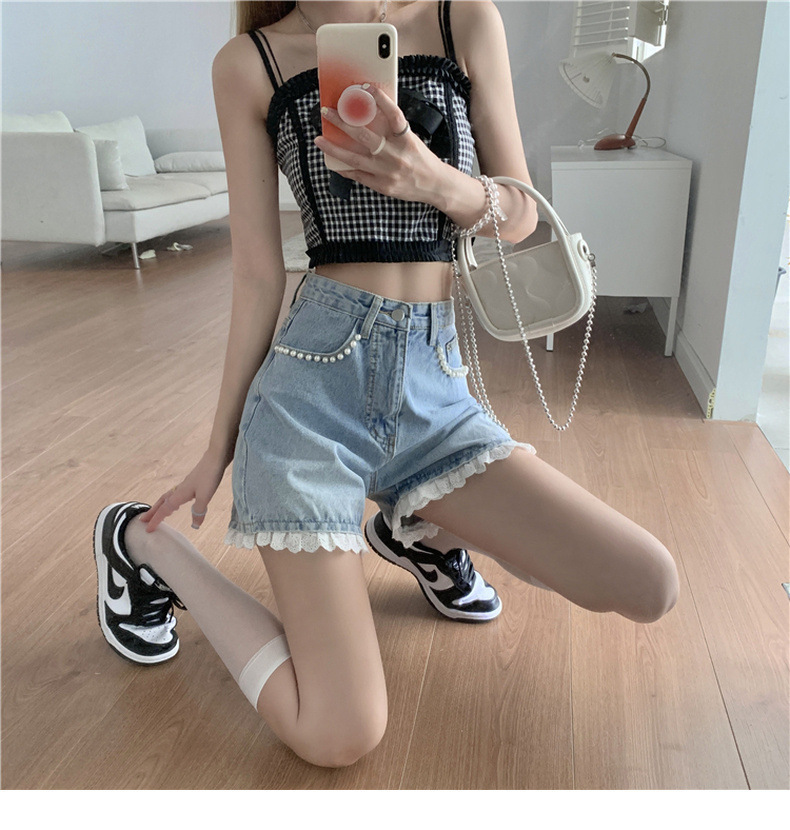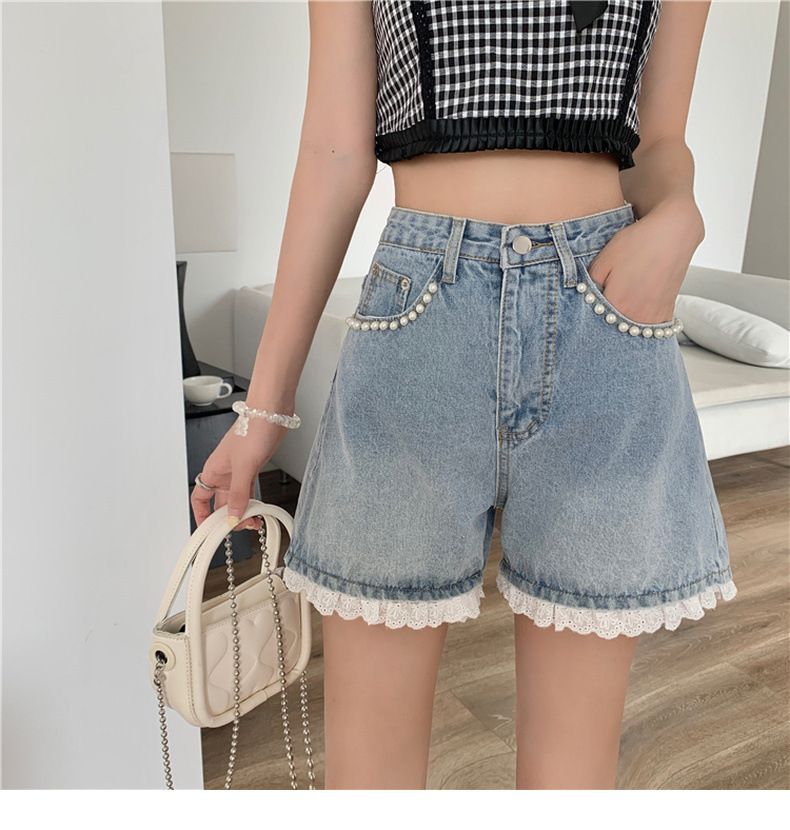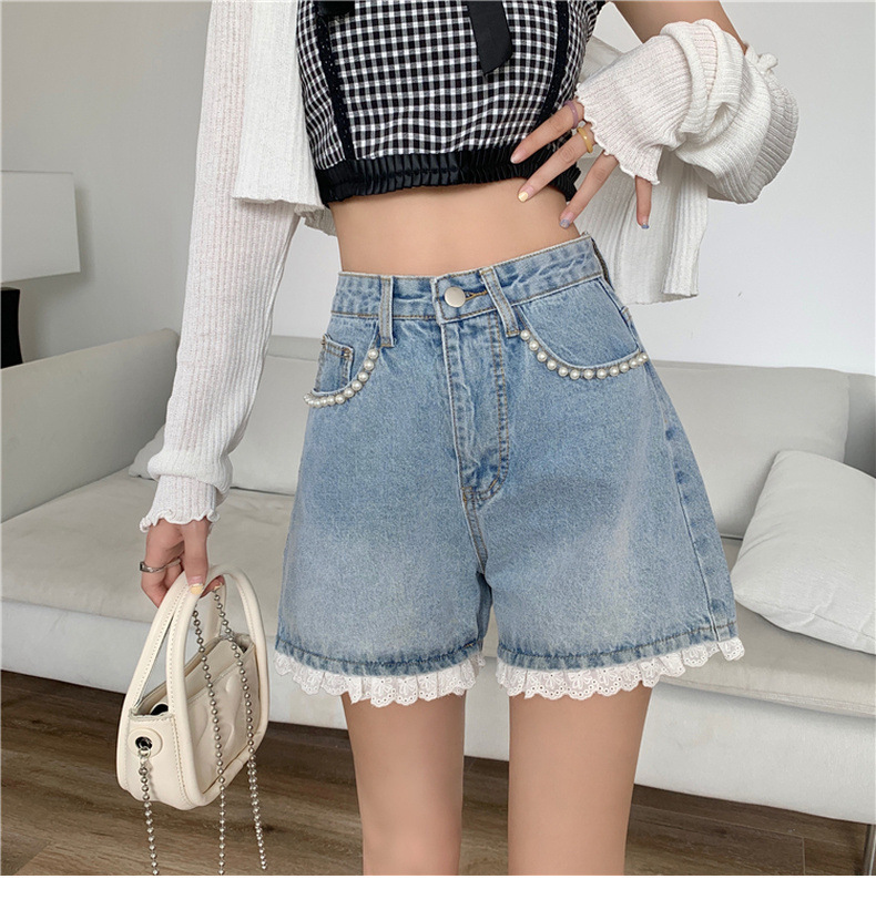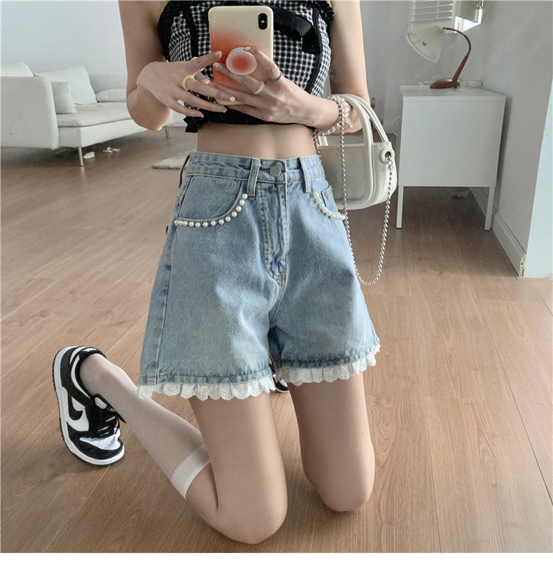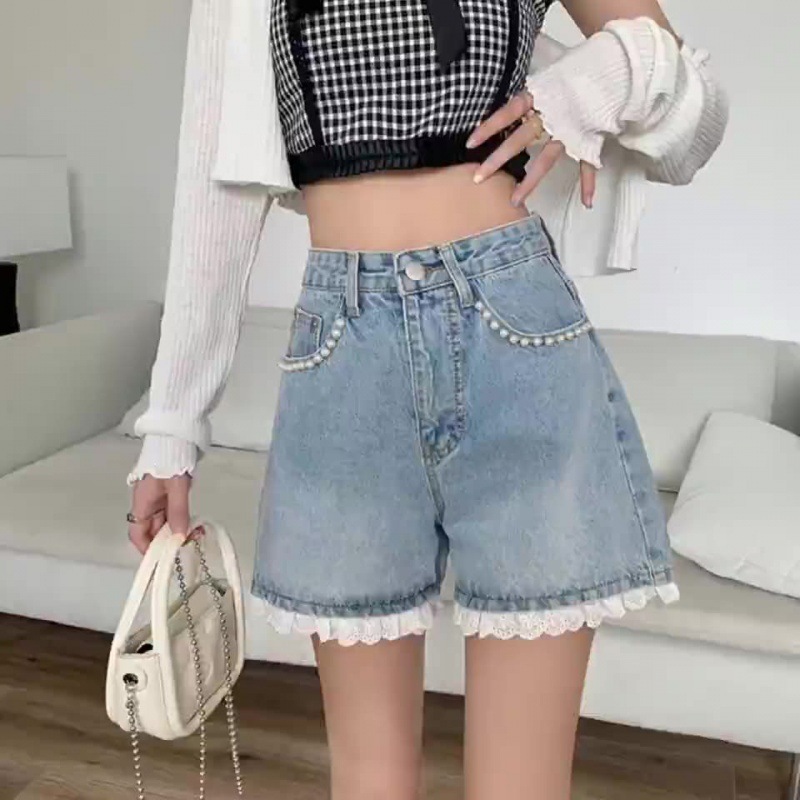 센스 레이스 하이 허리 데님 반바지 여성 여름 얇은 핫 팬츠 느슨한 넓은 다리 바지 여름 핫 팬츠 도매스토어 가기