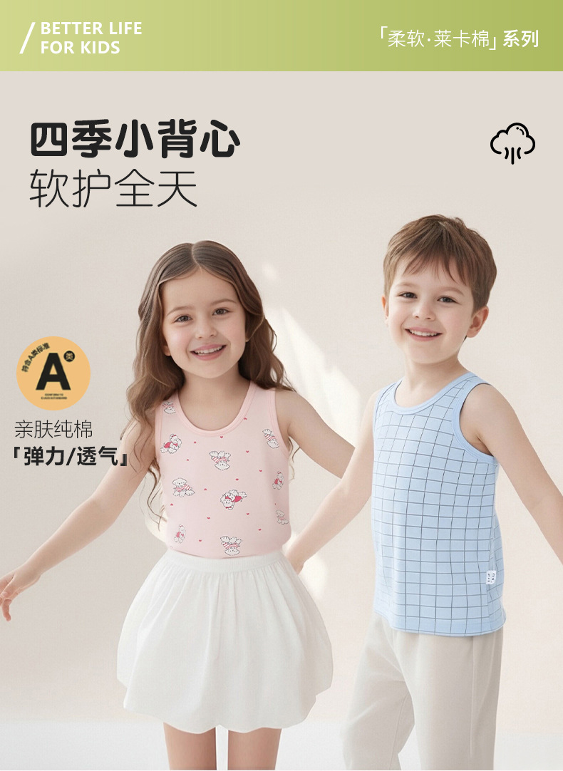 여름용 아동 순면 조끼, 순면 A급 아동 보온 조끼, 남녀 아동용 민소매 이너웨어스토어 가기