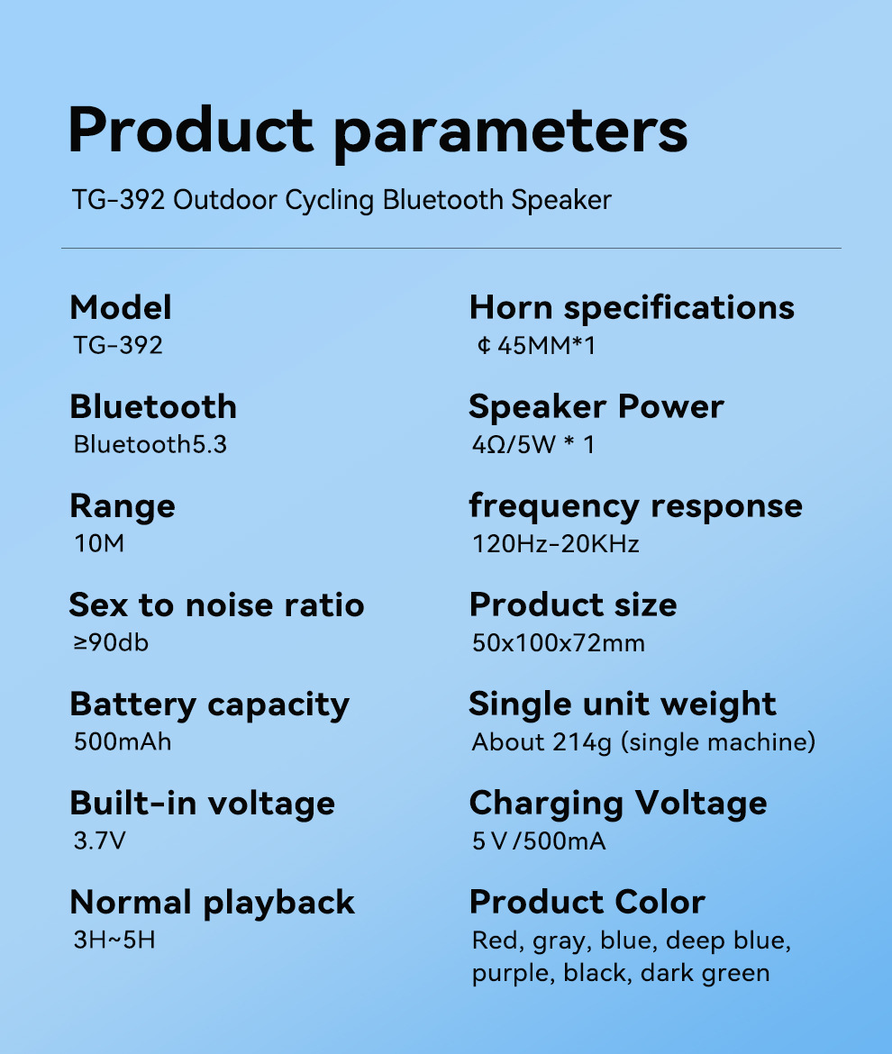 TG392 블루투스 스피커 야외 사이클링 무선 휴대용 오디오 스탠드 5 레벨 방수 스포츠 자전거 슈퍼