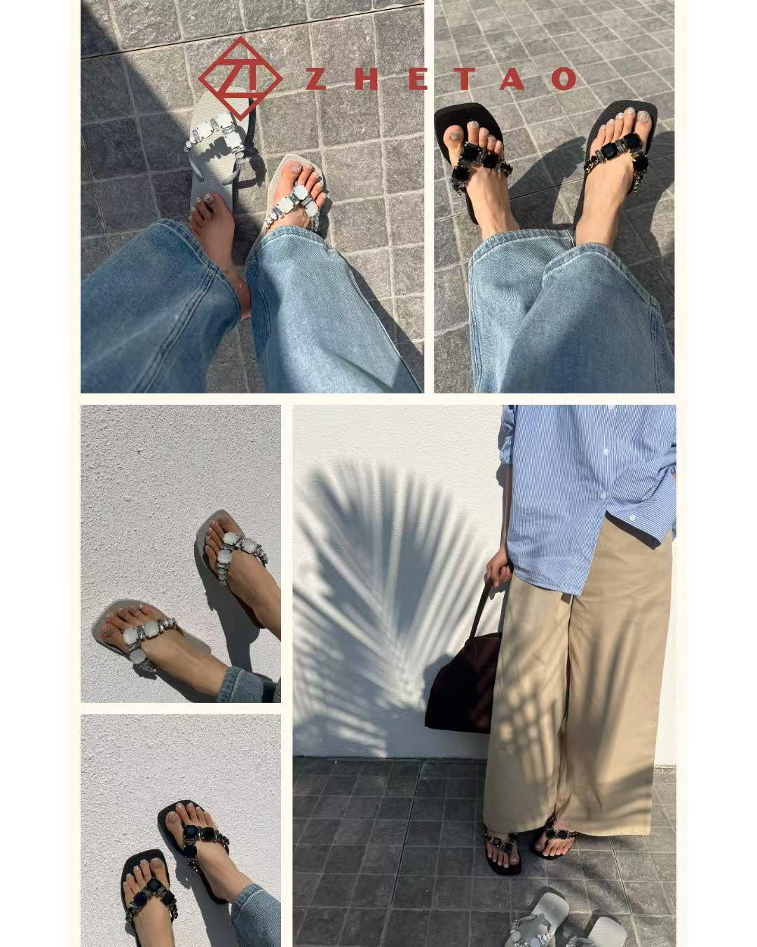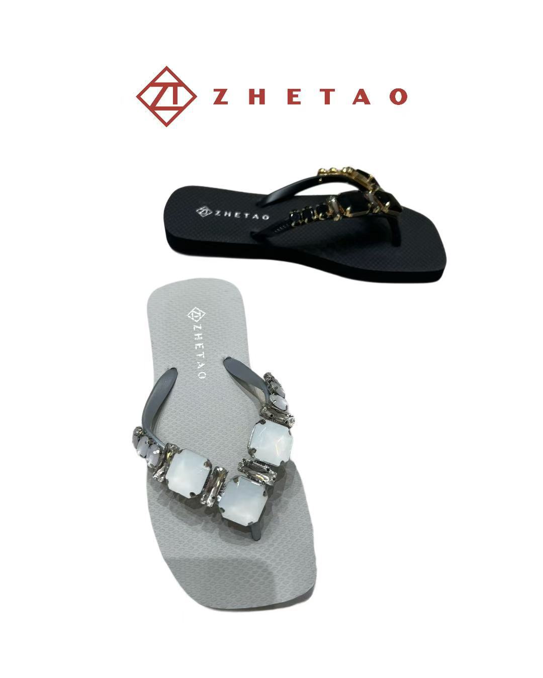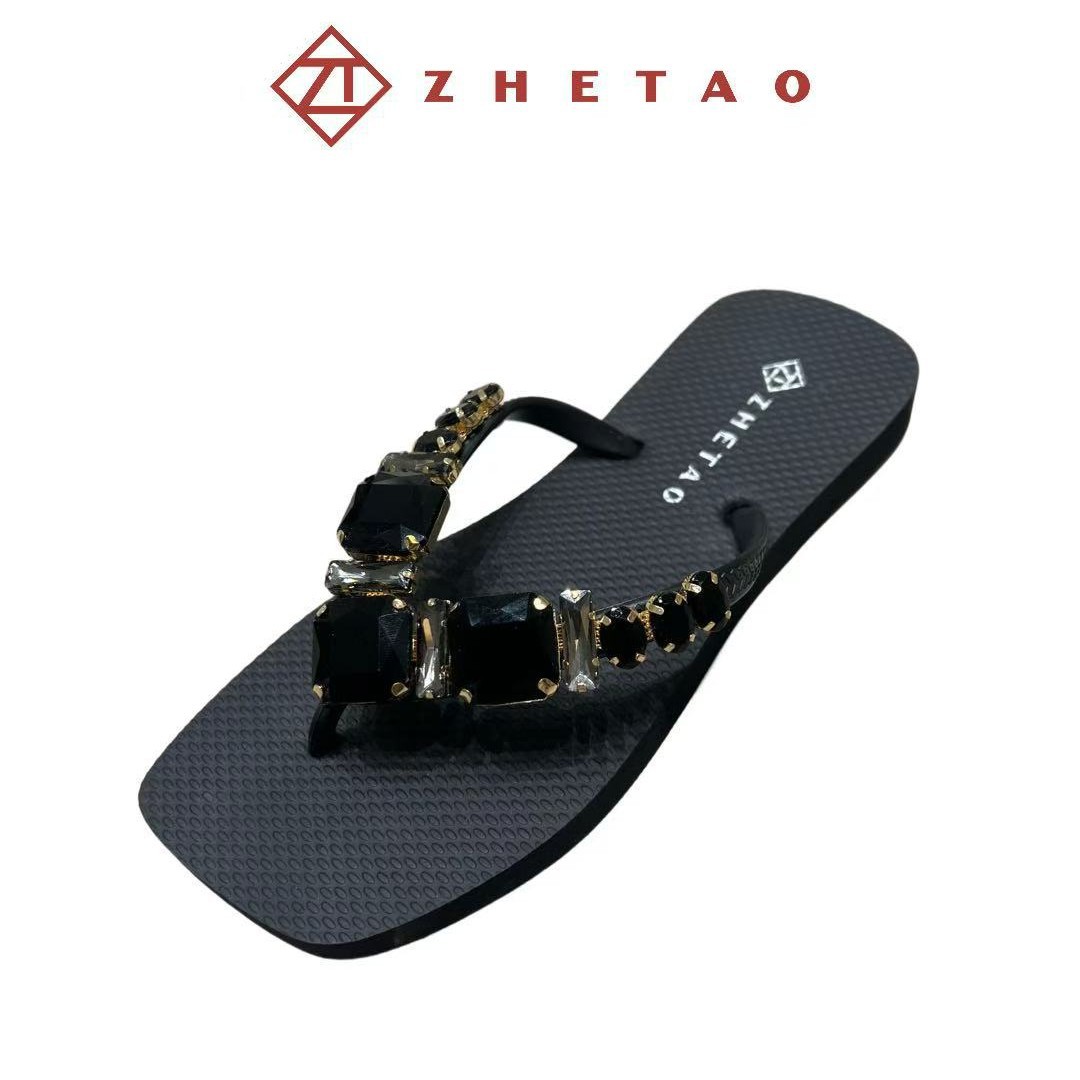 클립 빛나는 다이아몬드 플립 플롭 봄과 여름 zhetao2025 새로운 평면 솔리드 컬러 비치 클립 미끄럼 방지 플립 플립 플롭스토어 가기