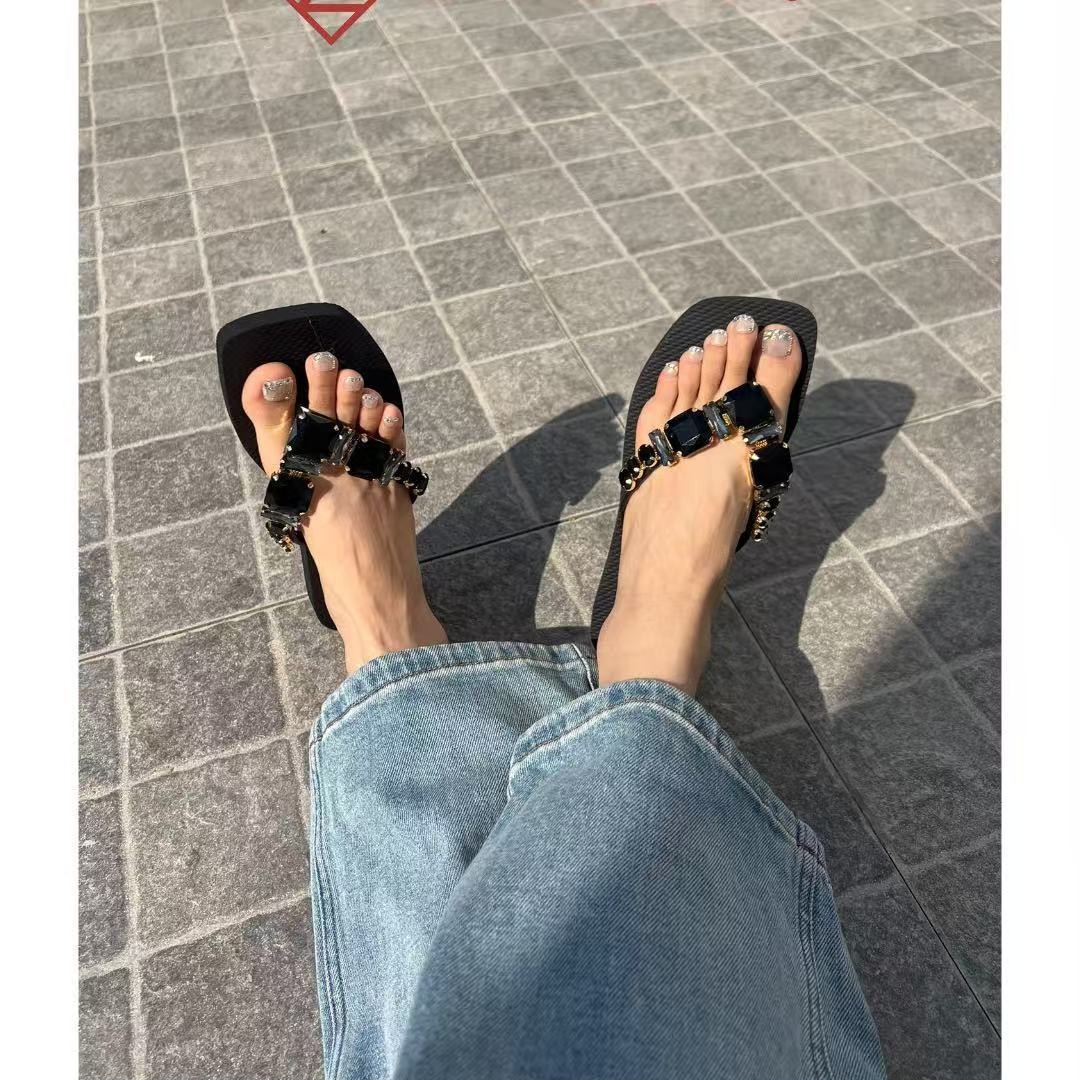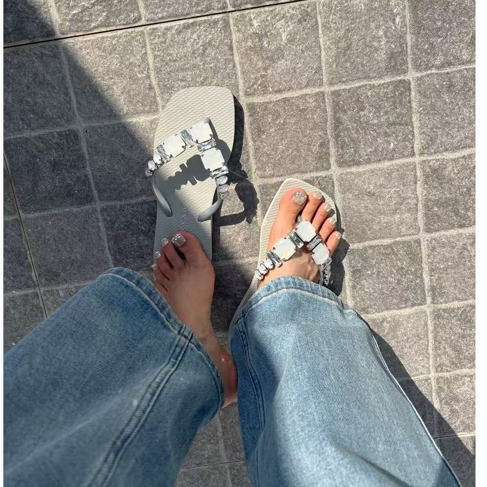 클립 빛나는 다이아몬드 플립 플롭 봄과 여름 zhetao2025 새로운 평면 솔리드 컬러 비치 클립 미끄럼 방지 플립 플립 플롭