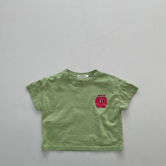• 레드 와이드 스트라이프 애플 반팔 티셔츠
