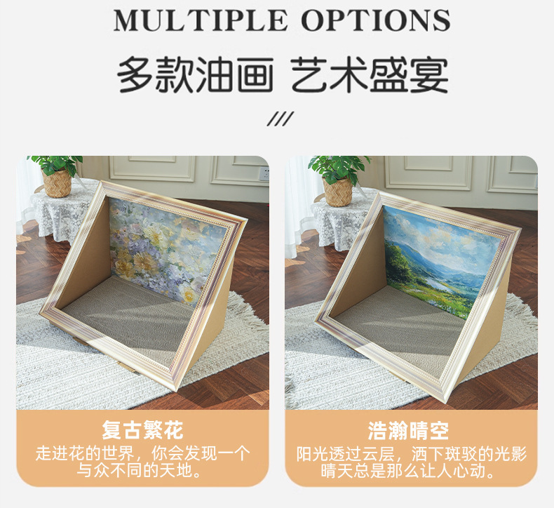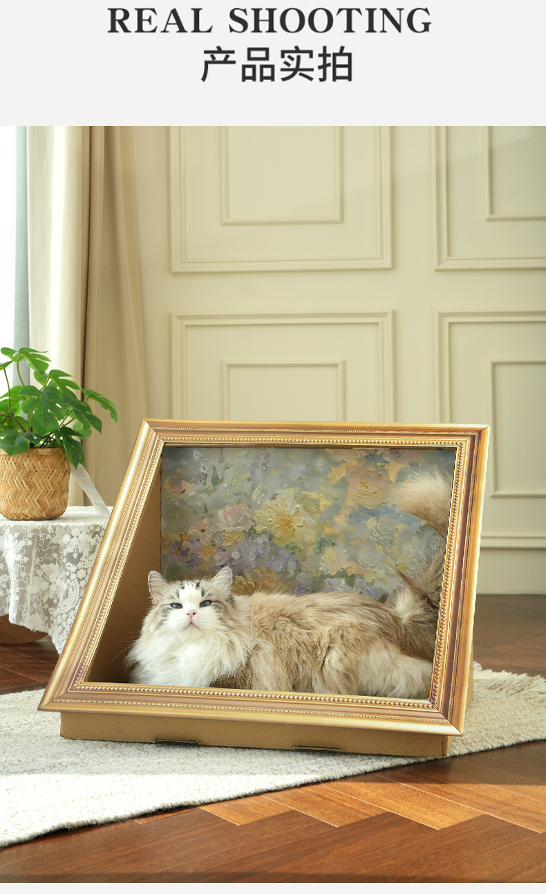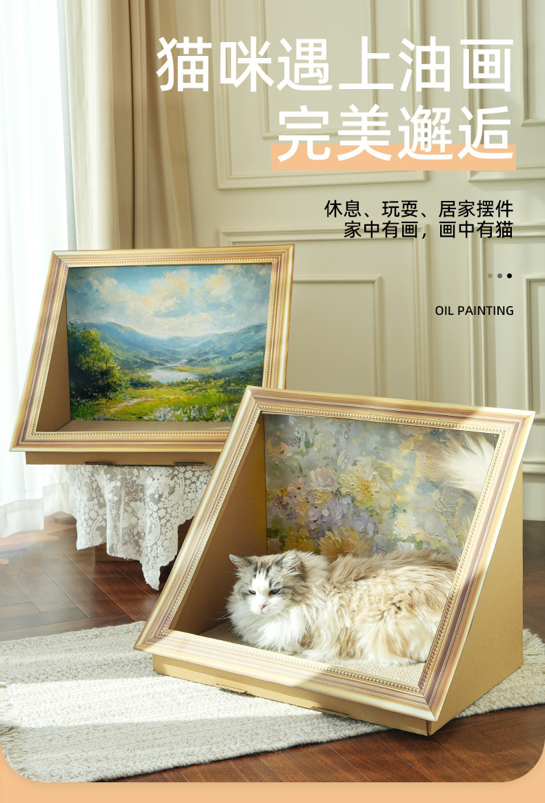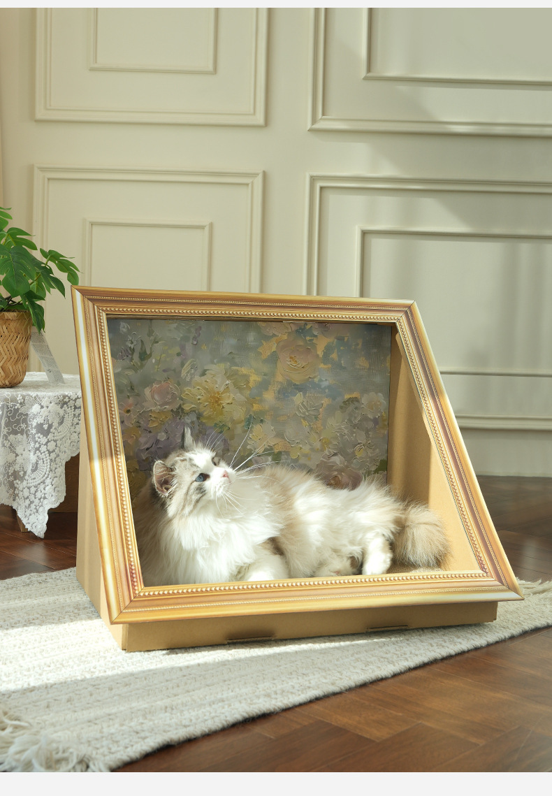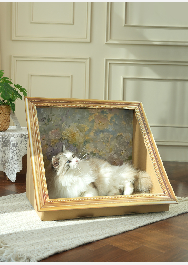 레트로 스타일 유화 고양이 둥지 고양이 긁기 보드 착용 방지 스크랩 무료 수직 통합 고양이 집 사진 프레임 스테레오 스크래치 보드 고양이 장난감스토어 가기