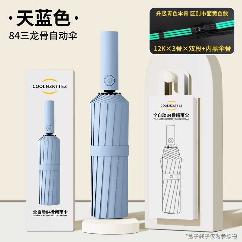 우산 강화 방풍 84-뼈 남자의 큰 접는 검은 접착제 여성의 써니 듀얼 사용 학생 태양 UV 독립 스테이션스토어 가기