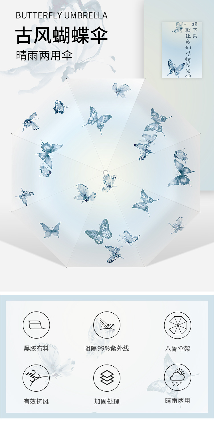 고풍스러운 나비 접이식 우산 도매, 햇빛과 비를 막아주는 자외선 차단 양용 우산스토어 가기