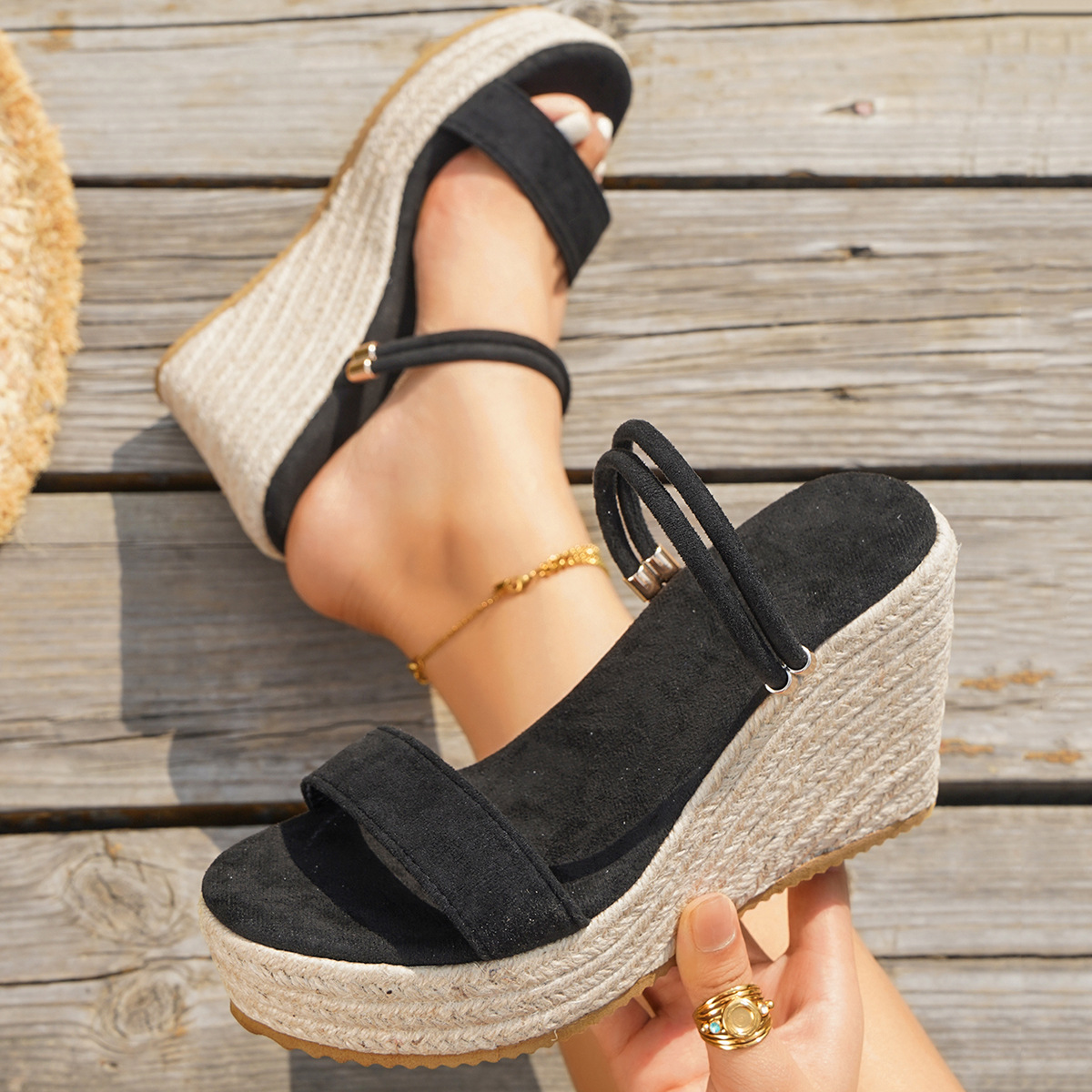 2025 신상 유럽풍 패션 두꺼운 밑창 방수 웨지힐 여성화 둥근 앞코 편안한 고급 샌들 하이힐스토어 가기