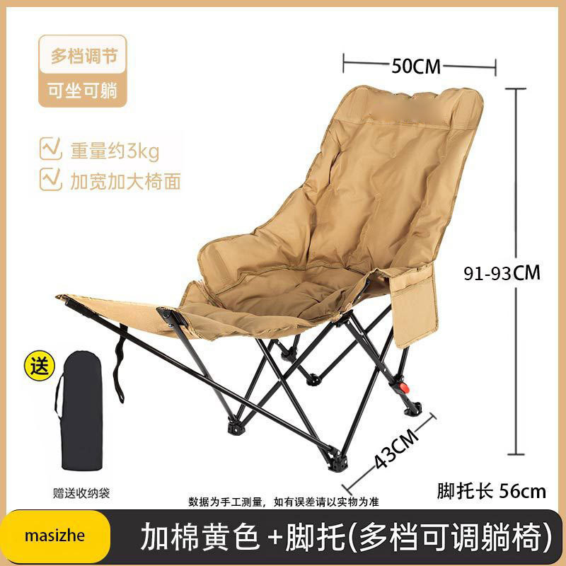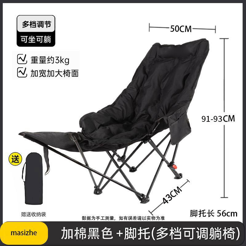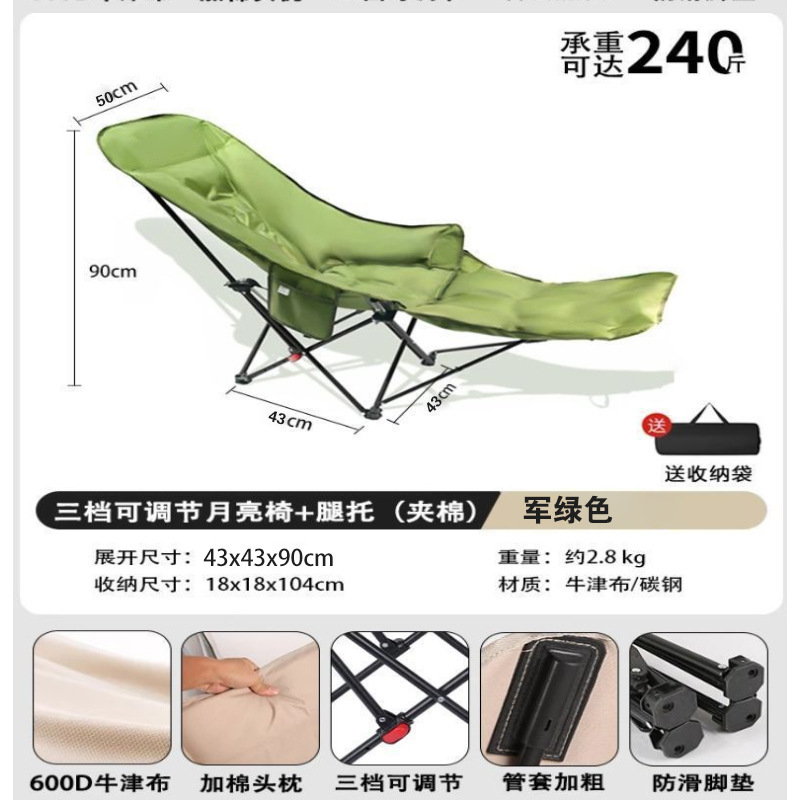 户外躺椅折叠椅子带腿托三档调节便携午休月亮椅子野外露营折叠椅