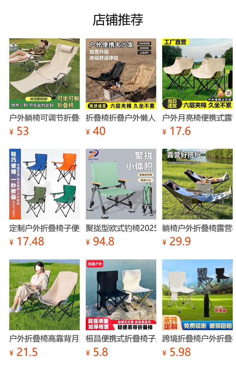 다리 받침대가 있는 야외용 접이식 의자, 3단 조절식 휴대용 점심시간 달 의자, 야외 캠핑용 접이식 의자스토어 가기
