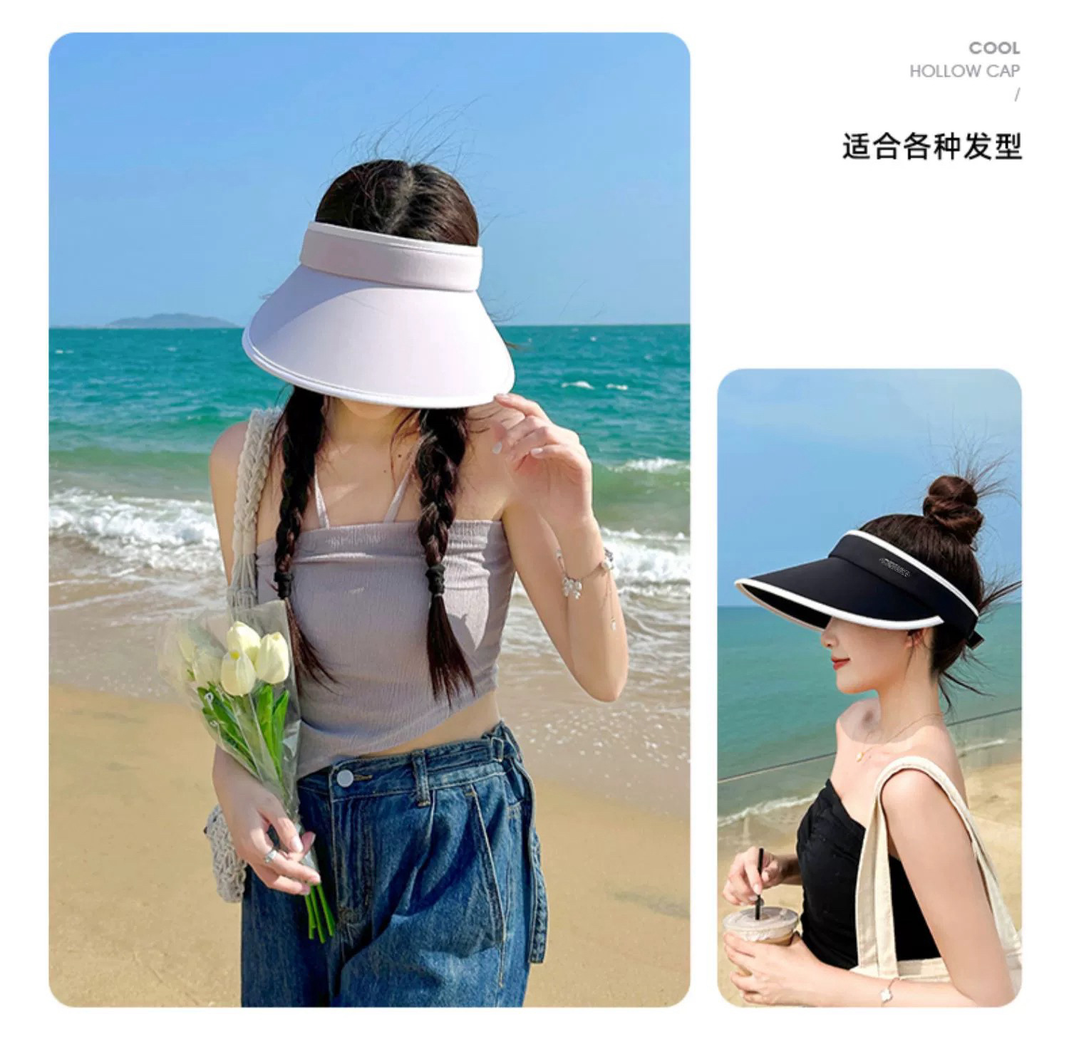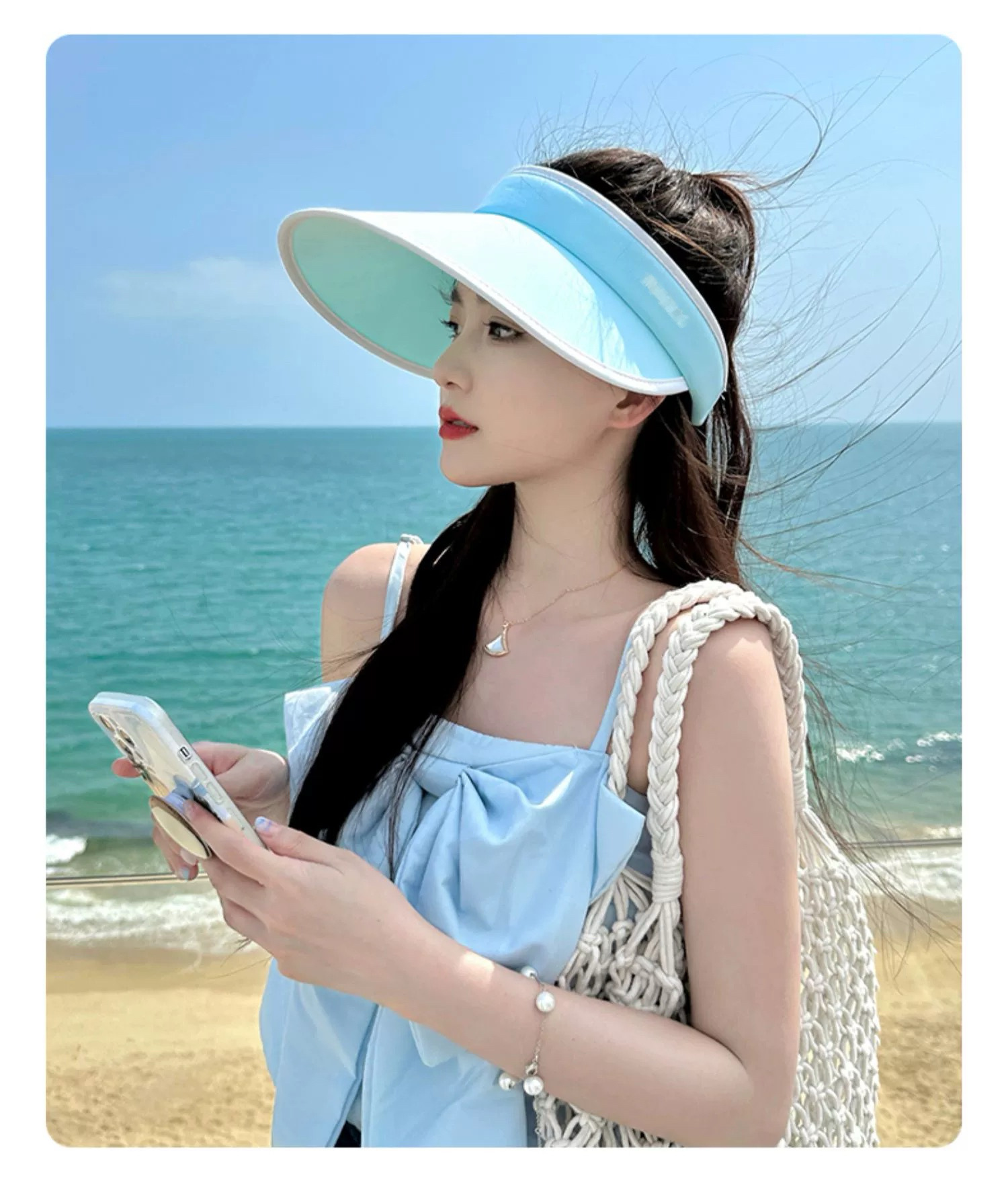 여름 접이식 빅 브림 아이스 실크 태양 모자 여성의 안티 자외선 에어 탑 모자 작은 태양 보호 모자를 보여주는 모든 경기 얼굴스토어 가기