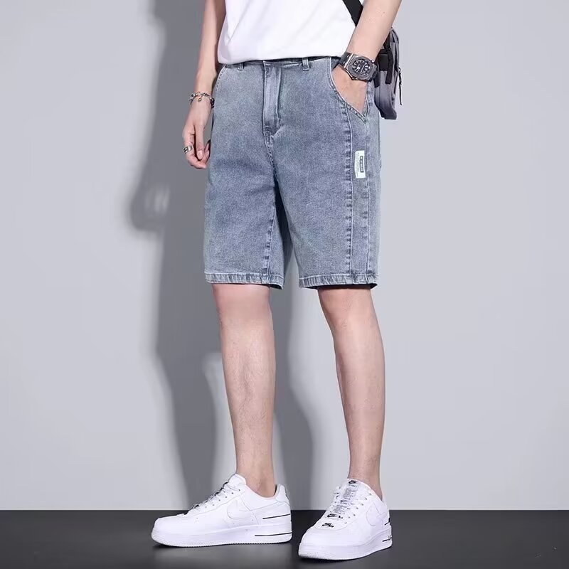 2025 데님 반바지 남성 여름 얇은 느슨한 유행 남성 트렌디 브랜드 스트레치 캐주얼 라이트 컬러 하프 바지