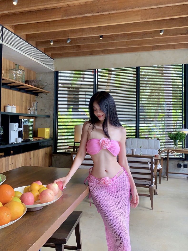 새로운 태국 수영복 노란색 블라우스 휴일 긴 원피스 수영복 비키니 사진 아름다운 고급 온천 수영복스토어 가기