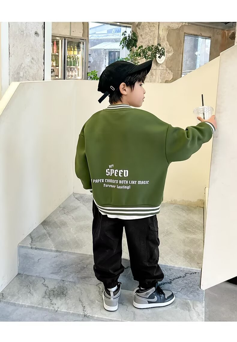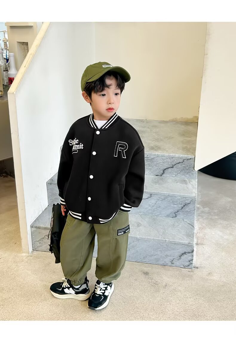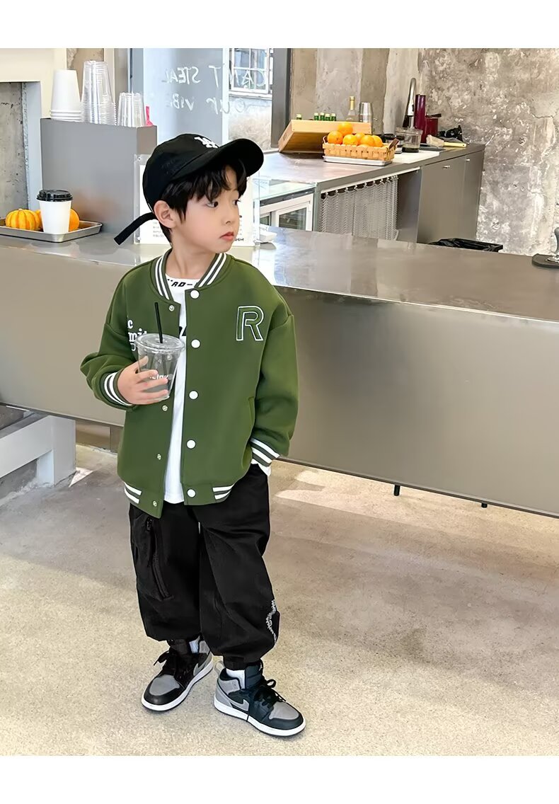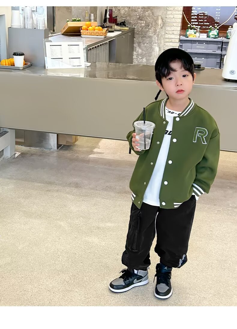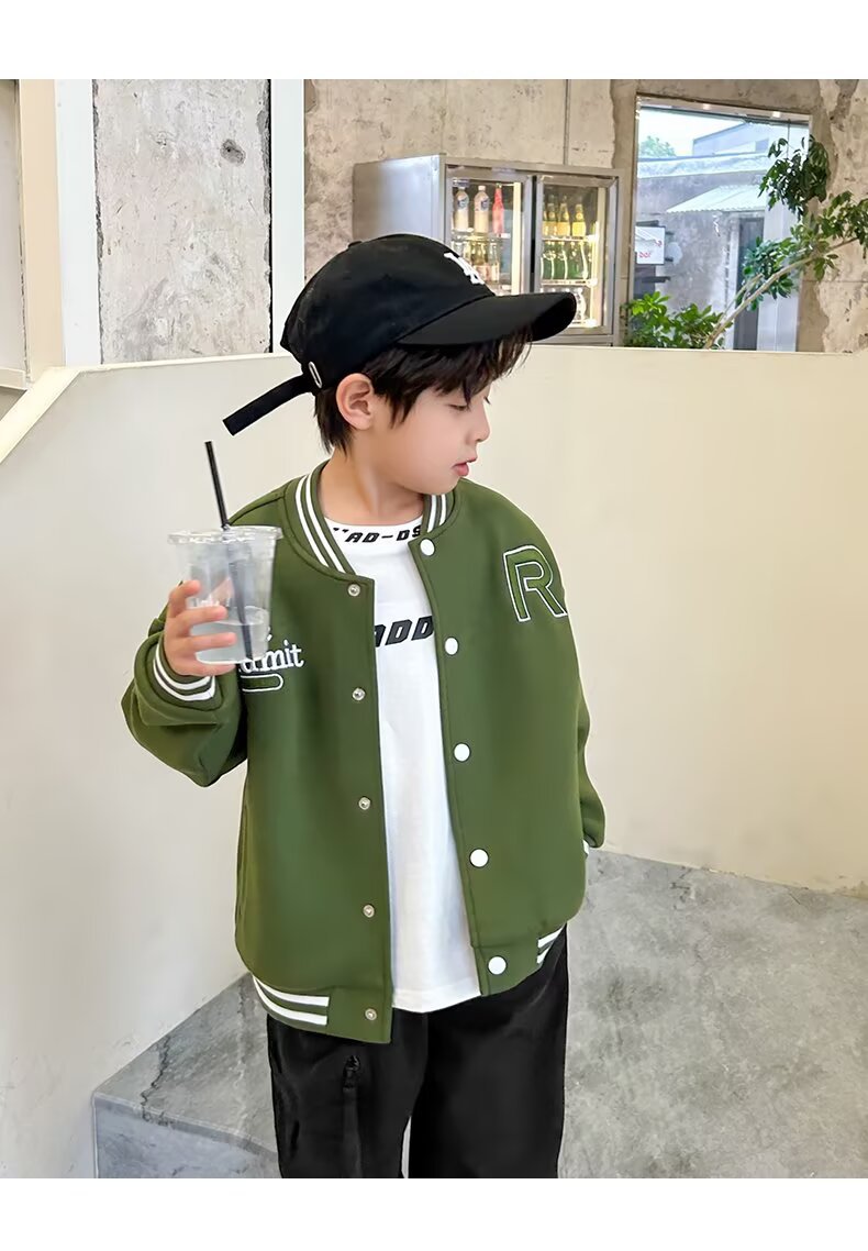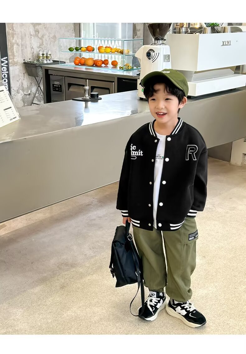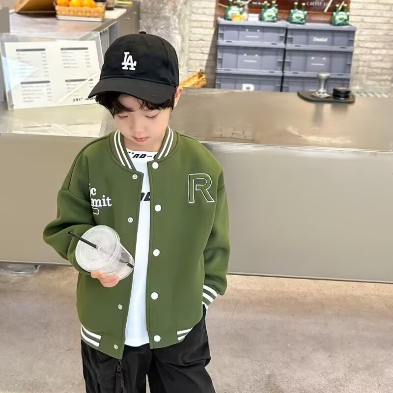 소년 자켓 야구 세트 잘 생긴 유행 편지 2025 년 봄과 가을 새로운 어린이 자켓 루즈 탑스토어 가기