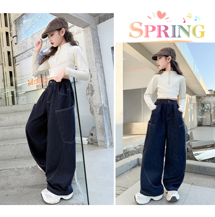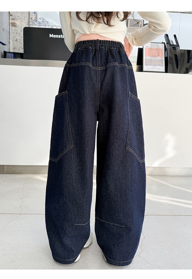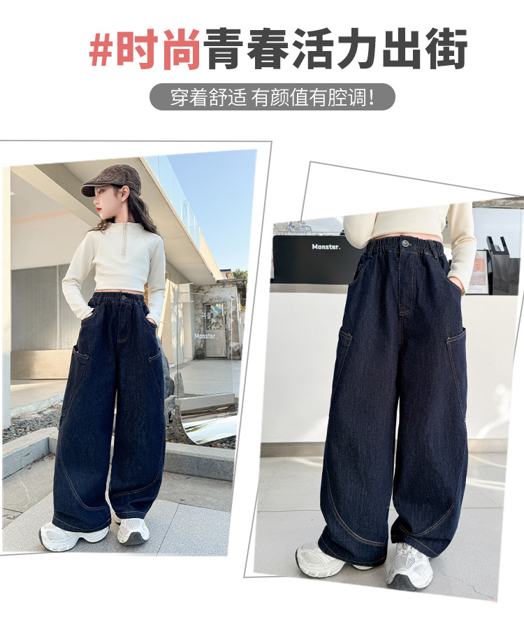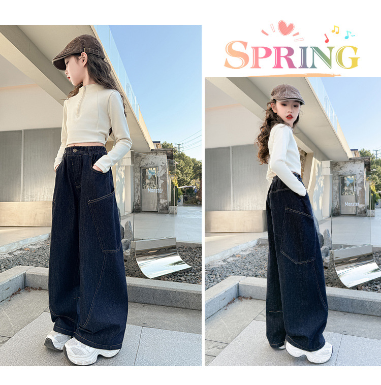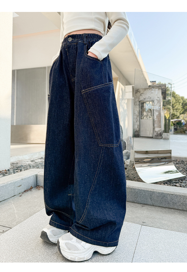 소녀 청바지 2025 봄은 큰 어린이 유행 레트로 마체테 바지 어린이 캐주얼 긴 바지 봄과 가을 패션스토어 가기