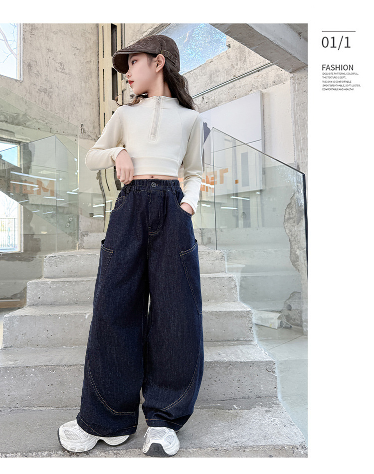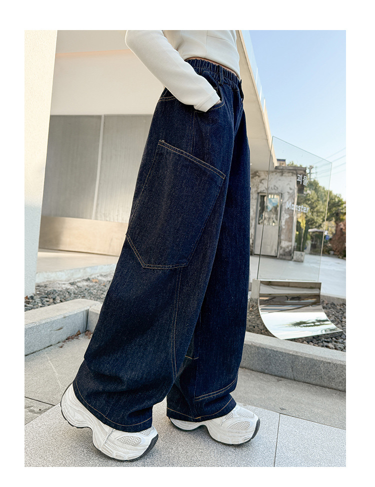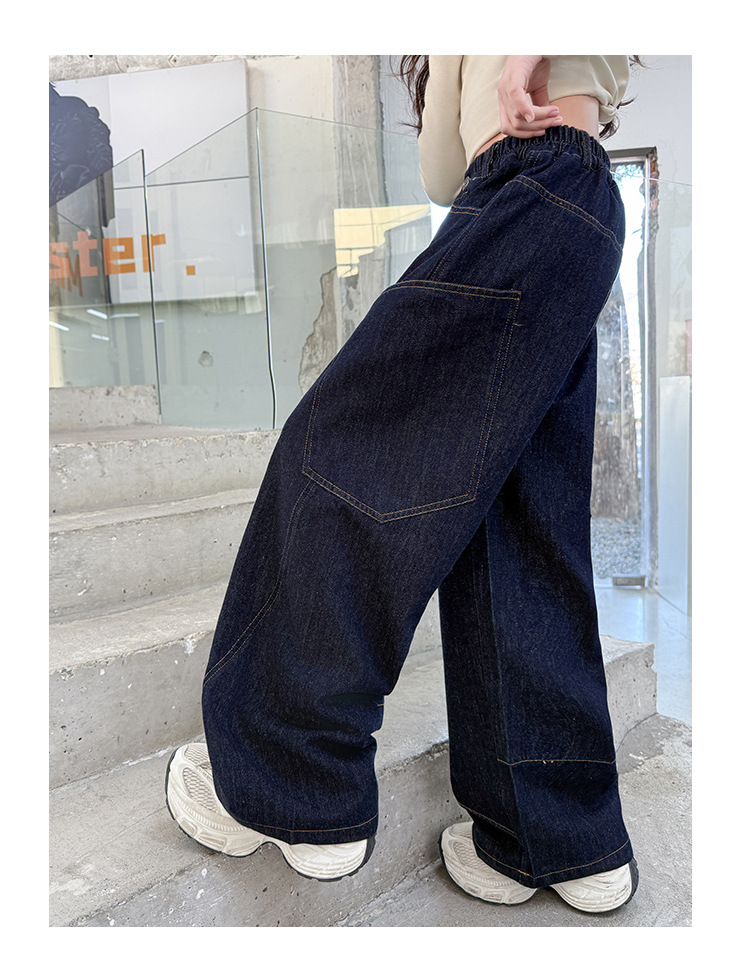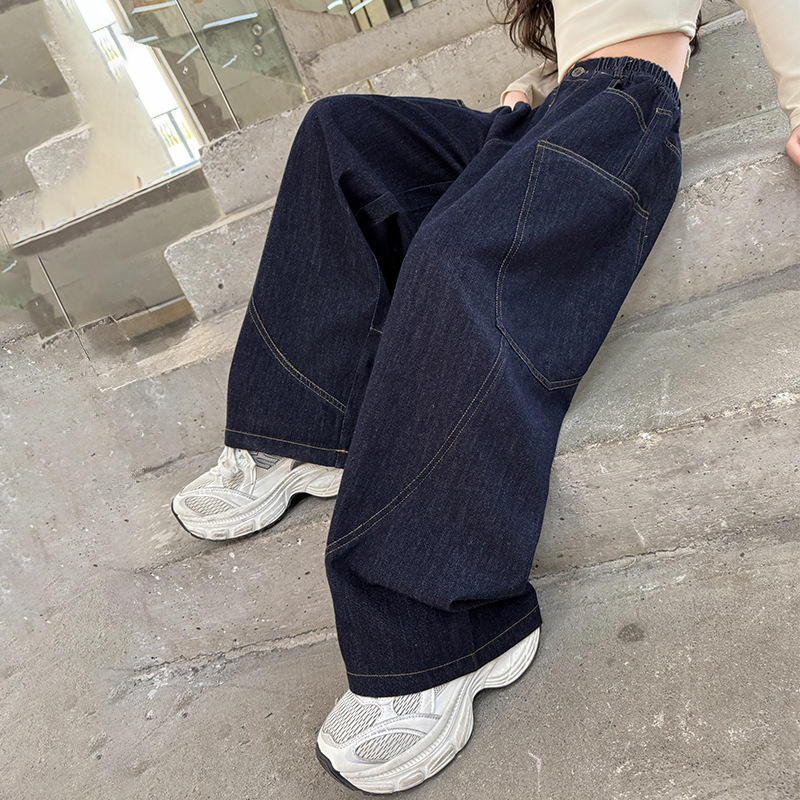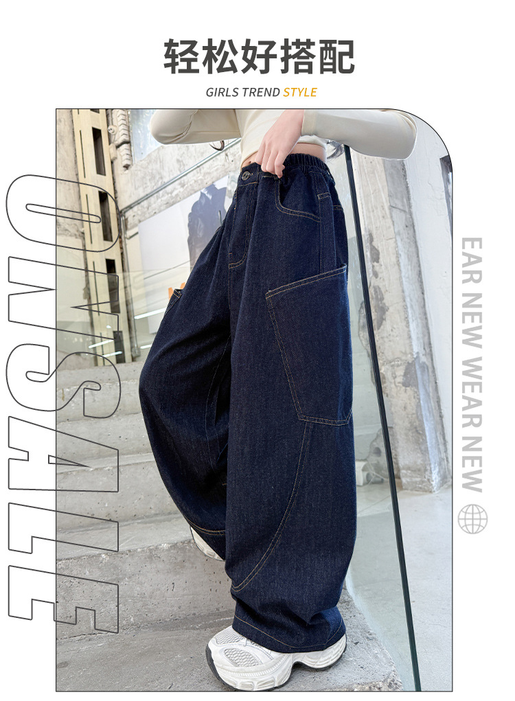 소녀 청바지 2025 봄은 큰 어린이 유행 레트로 마체테 바지 어린이 캐주얼 긴 바지 봄과 가을 패션스토어 가기
