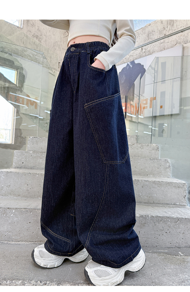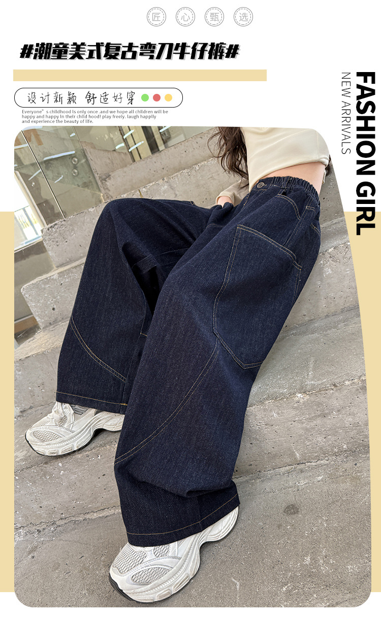 소녀 청바지 2025 봄은 큰 어린이 유행 레트로 마체테 바지 어린이 캐주얼 긴 바지 봄과 가을 패션