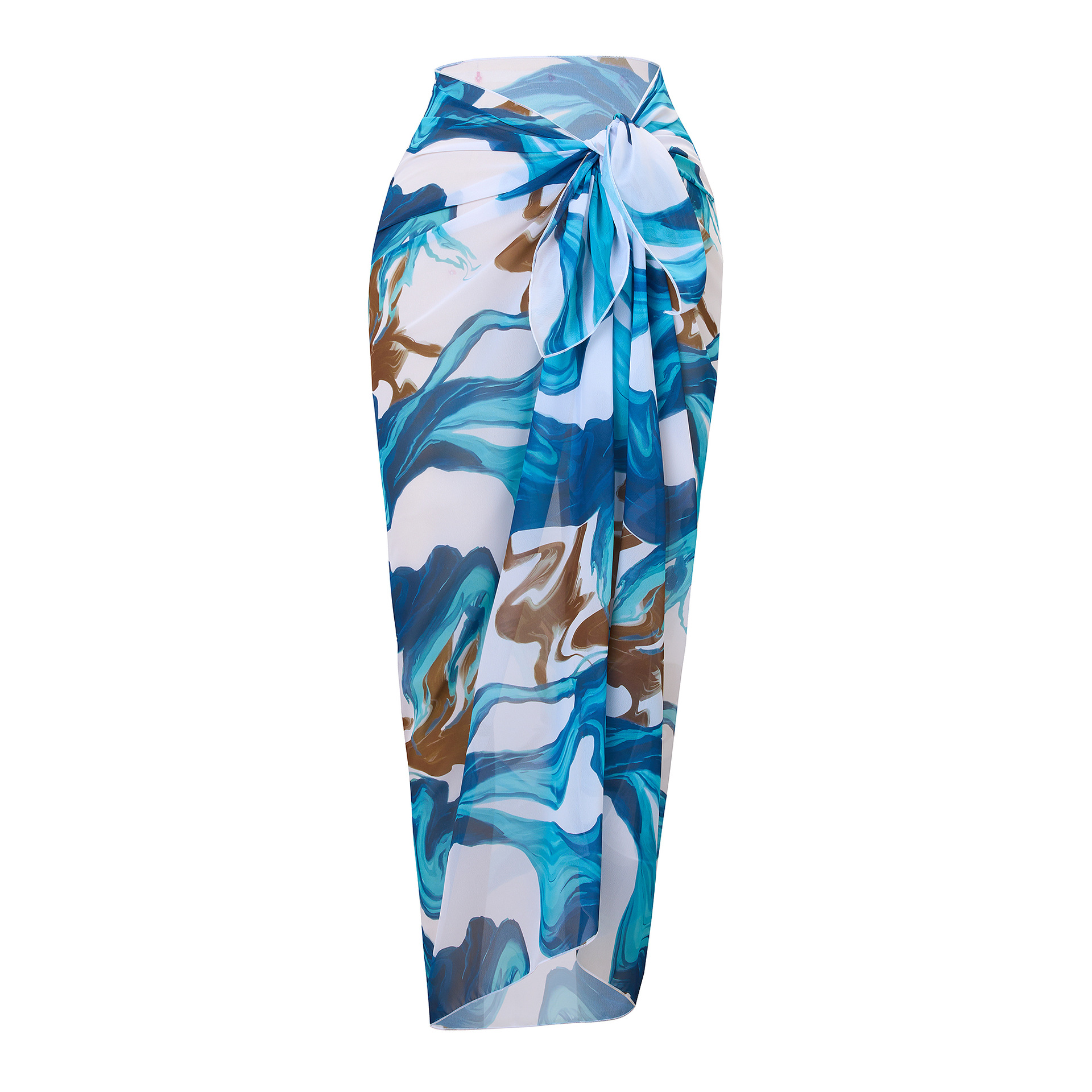 俏佳媛2025欧美新款分体泳衣女士尚性感挂脖系带雪纺裹裙三件套装