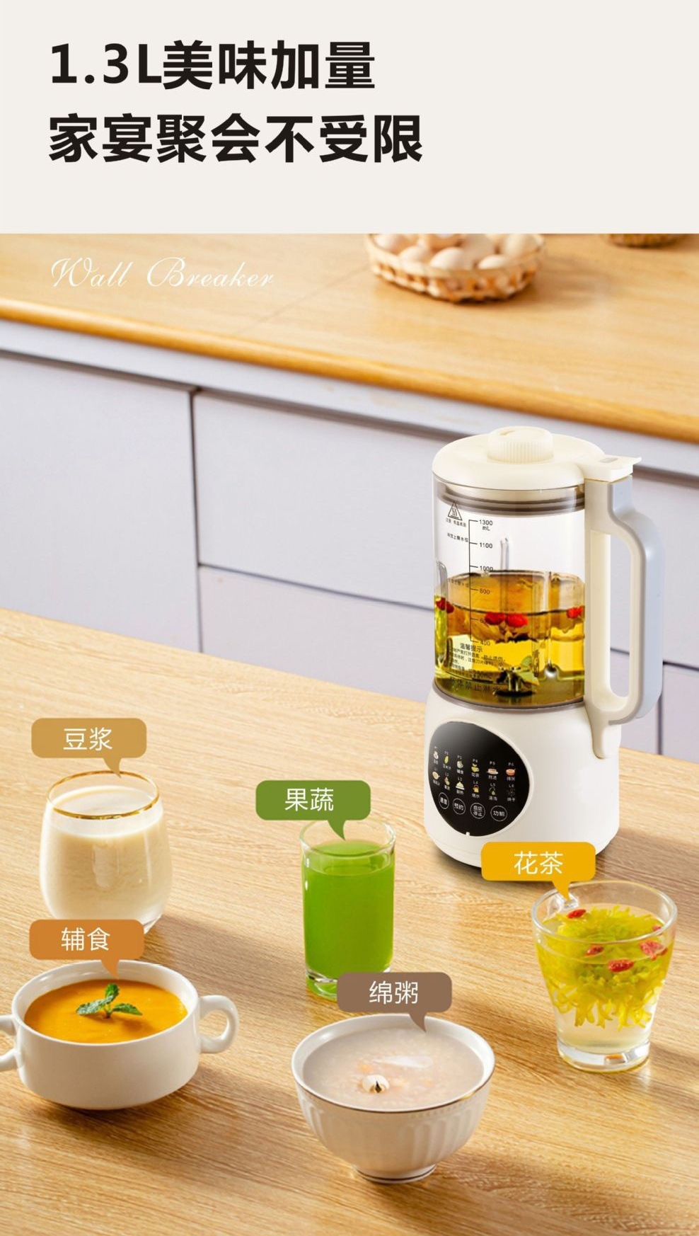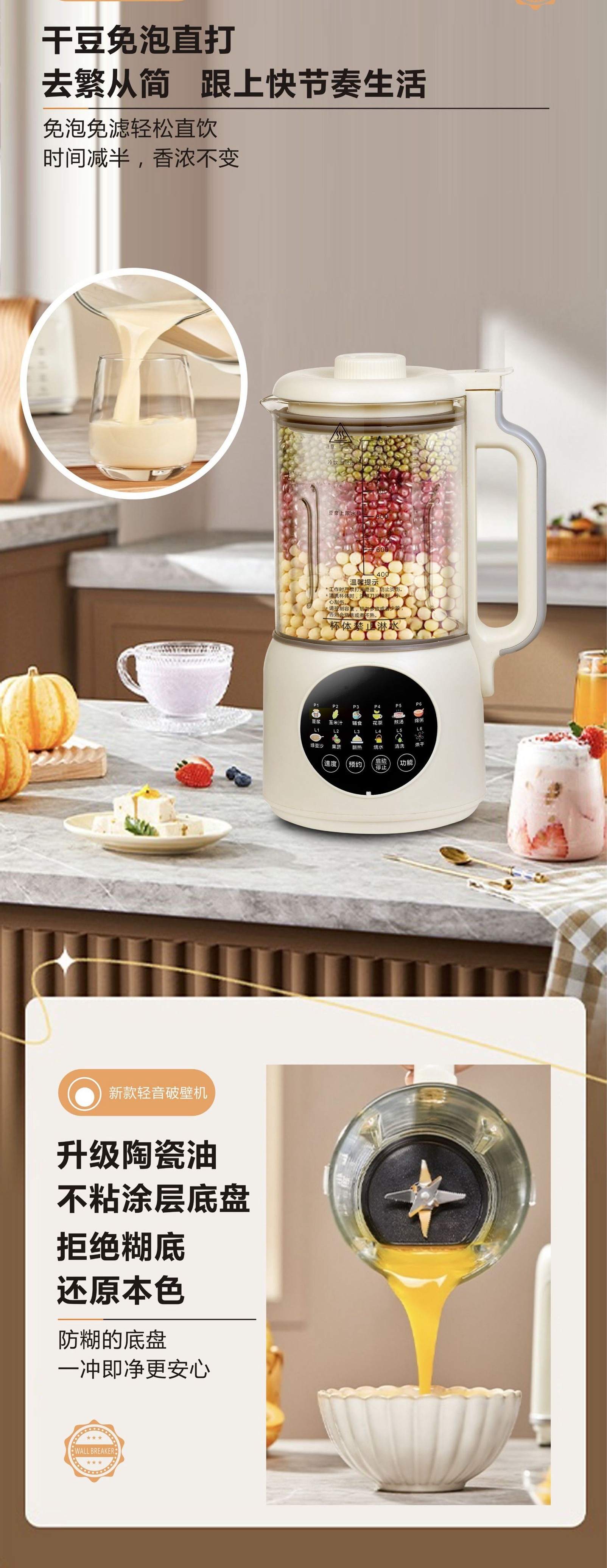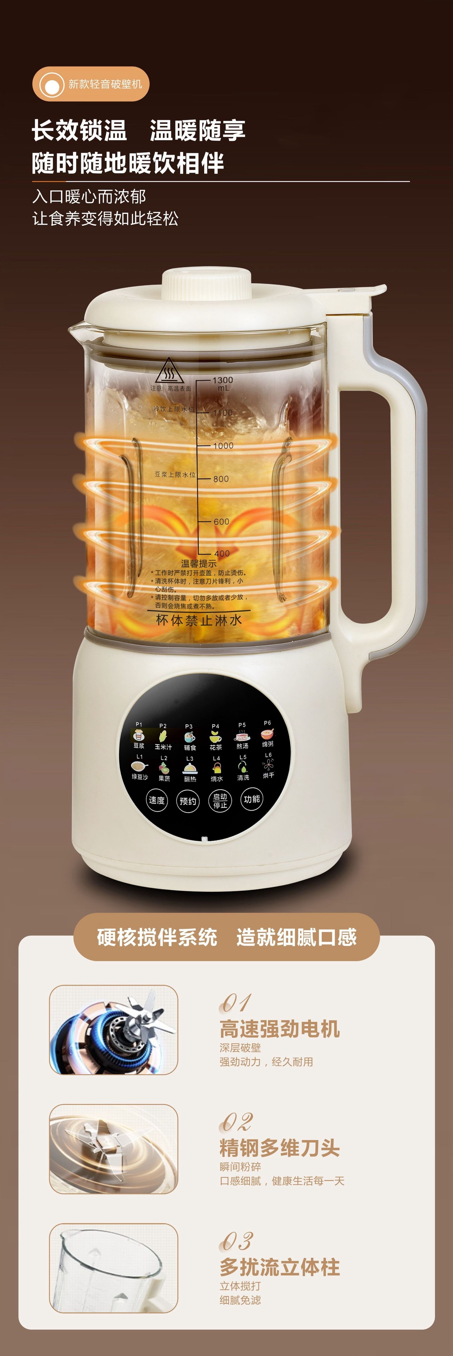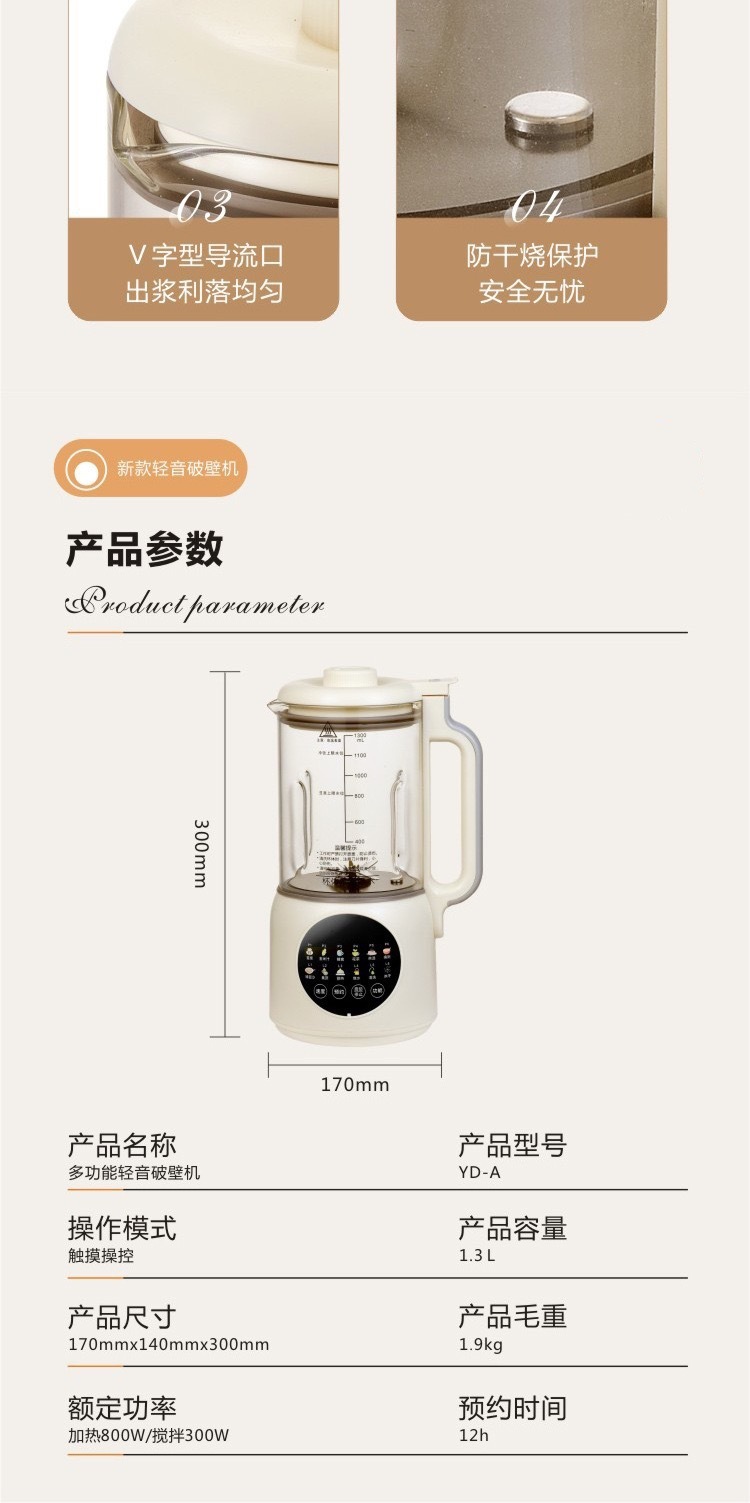 가열식 다기능 요리기 1.3L 저소음 무조리 무잔류물 스마트 소형 두유기 도매 및 배송스토어 가기