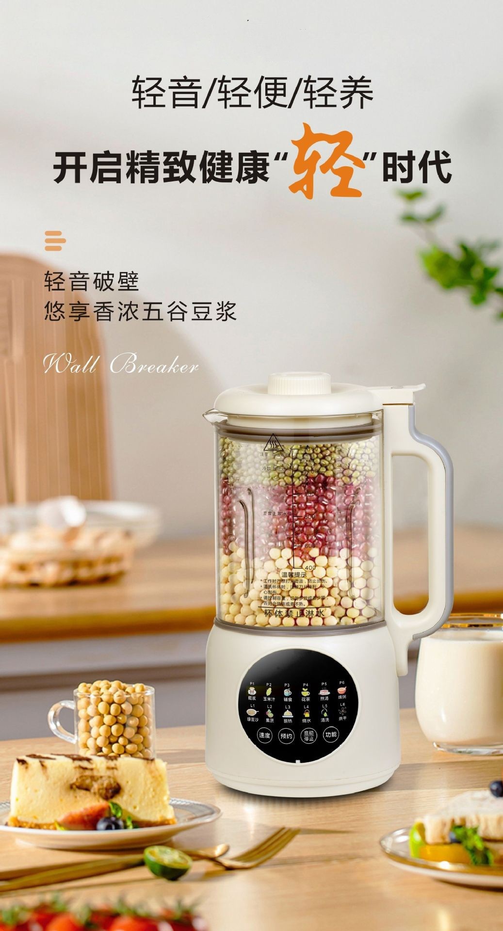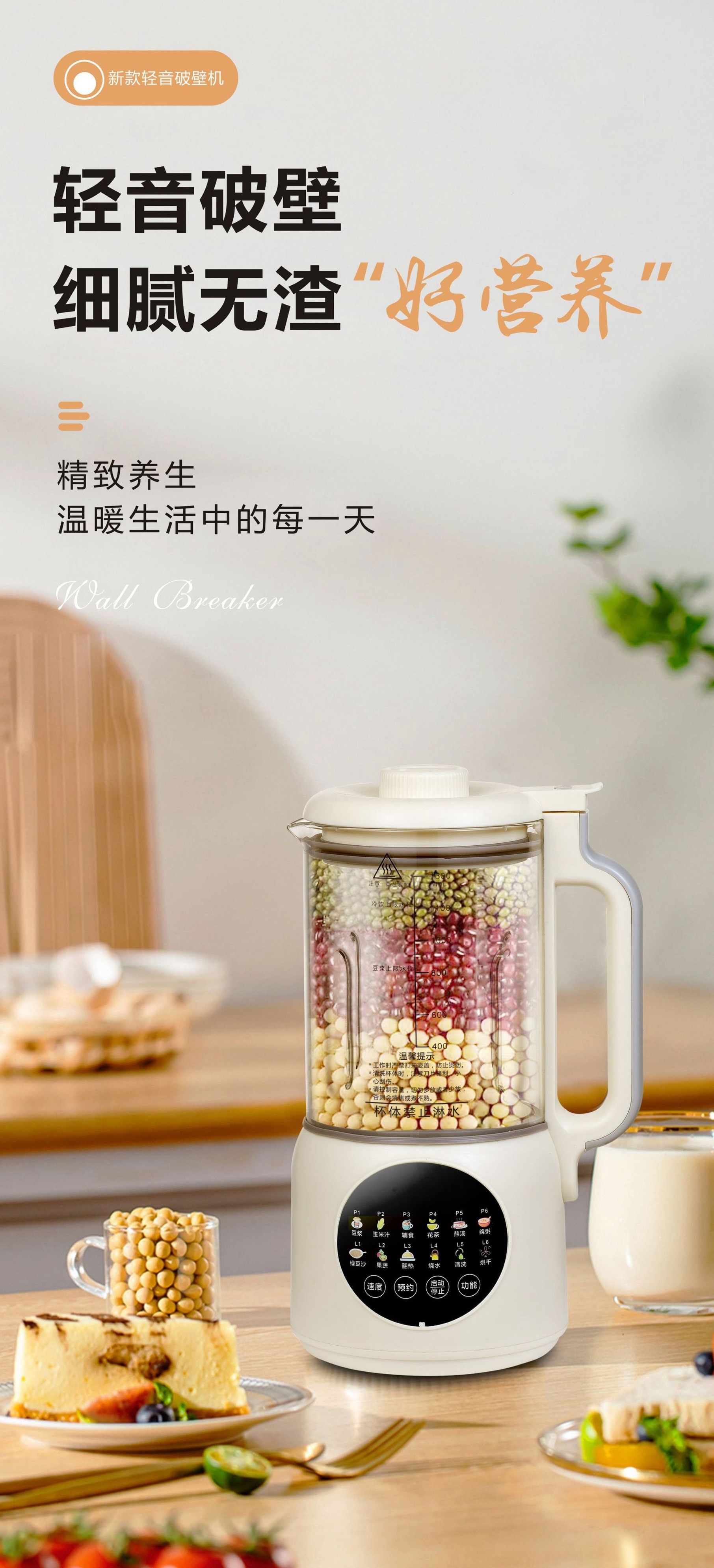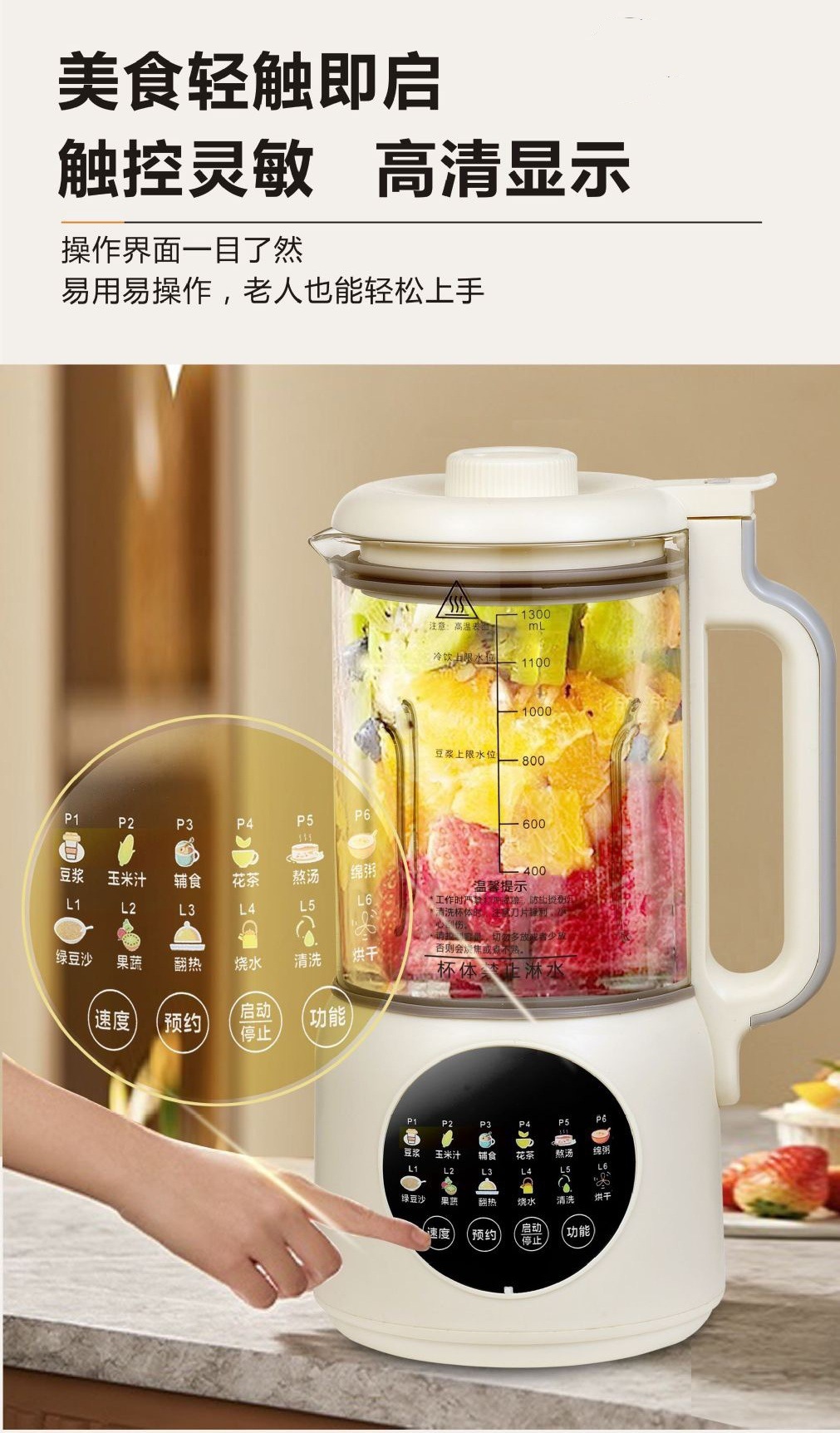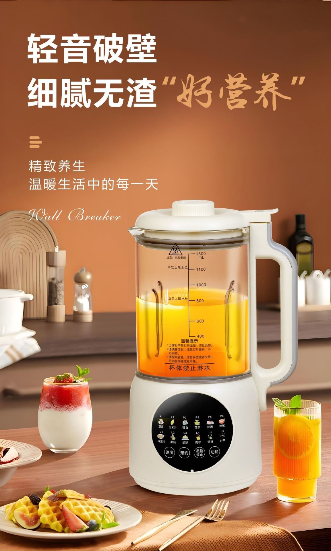 가열식 다기능 요리기 1.3L 저소음 무조리 무잔류물 스마트 소형 두유기 도매 및 배송스토어 가기