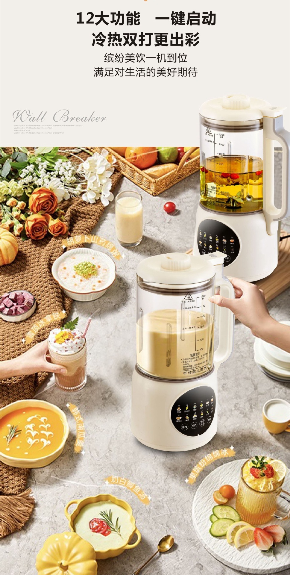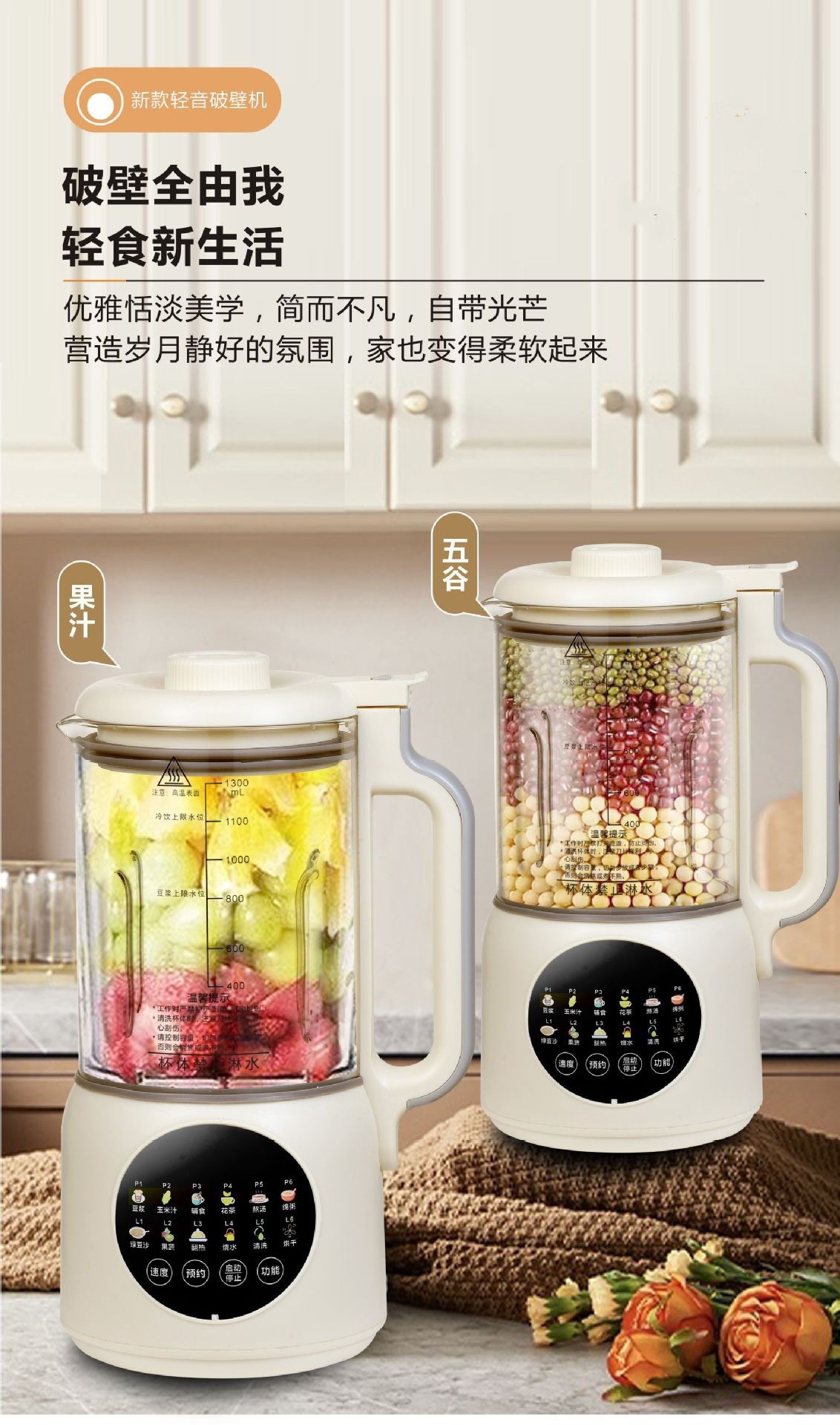가열식 다기능 요리기 1.3L 저소음 무조리 무잔류물 스마트 소형 두유기 도매 및 배송