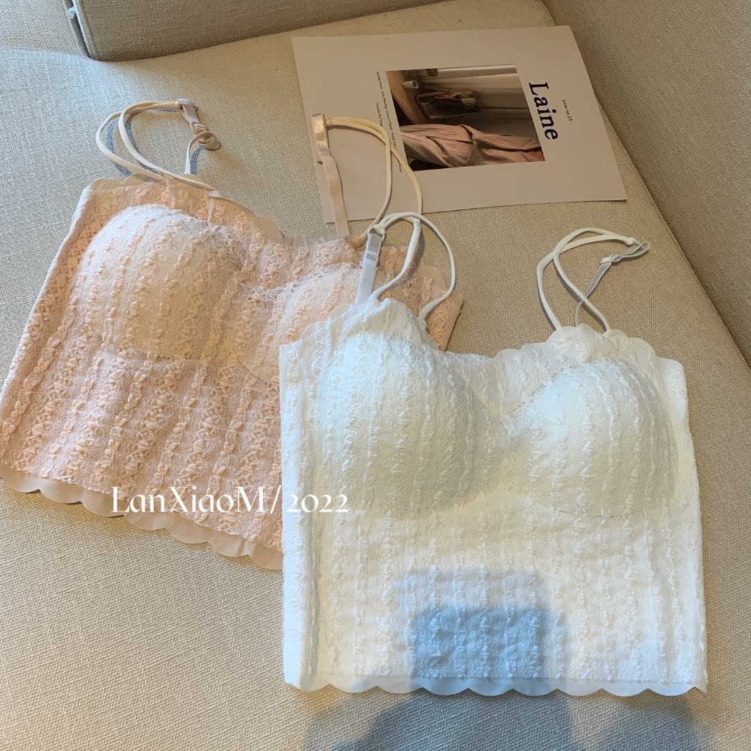 TikTok 폭발성 Camisole 레이스 버블 아름다운 백 튜브 탑 가슴 패드 랩 가슴 짧은 올매치 베이스 게으른 머리스토어 가기