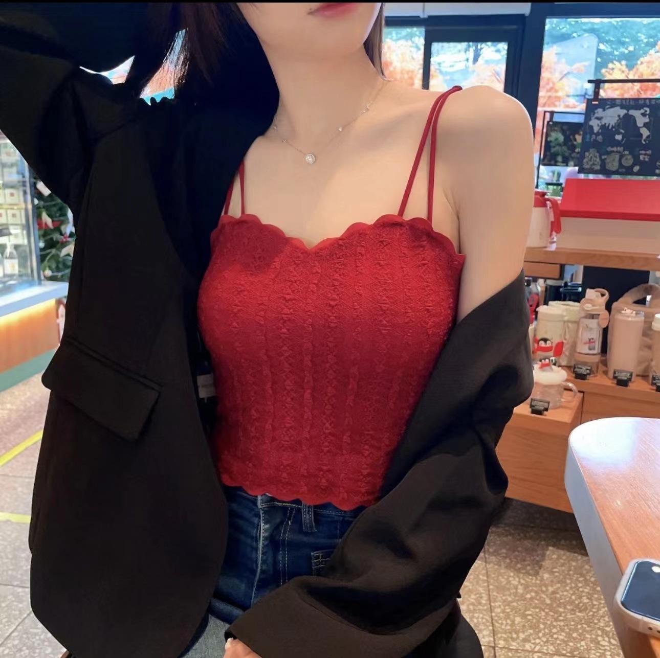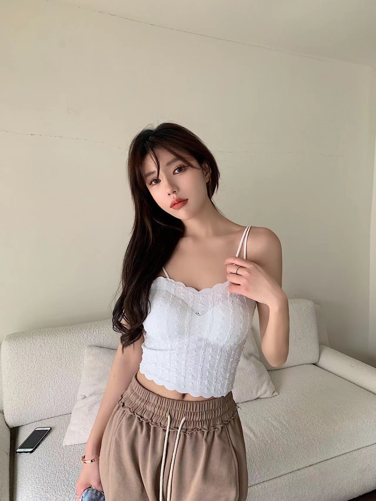 TikTok 폭발성 Camisole 레이스 버블 아름다운 백 튜브 탑 가슴 패드 랩 가슴 짧은 올매치 베이스 게으른 머리