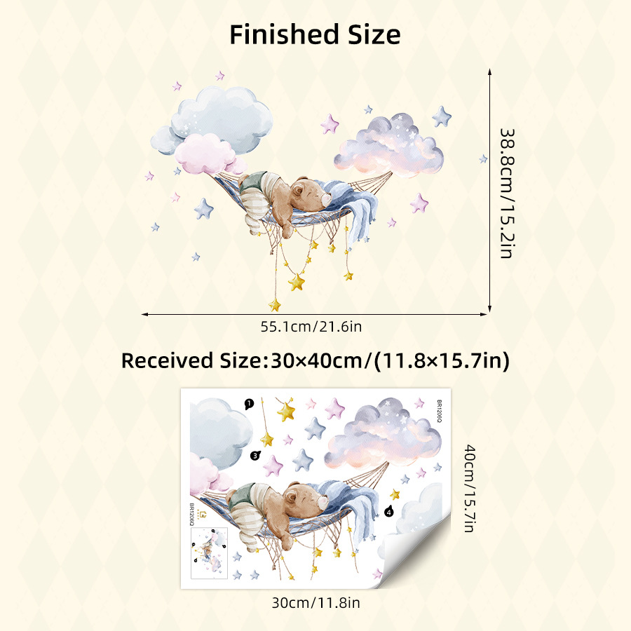 BR1206Q 클라우드 룸 슬리핑 베어 귀여운 만화 자기 접착 벽 스티커 침실 유치원 어린이 방 장식 스티커스토어 가기