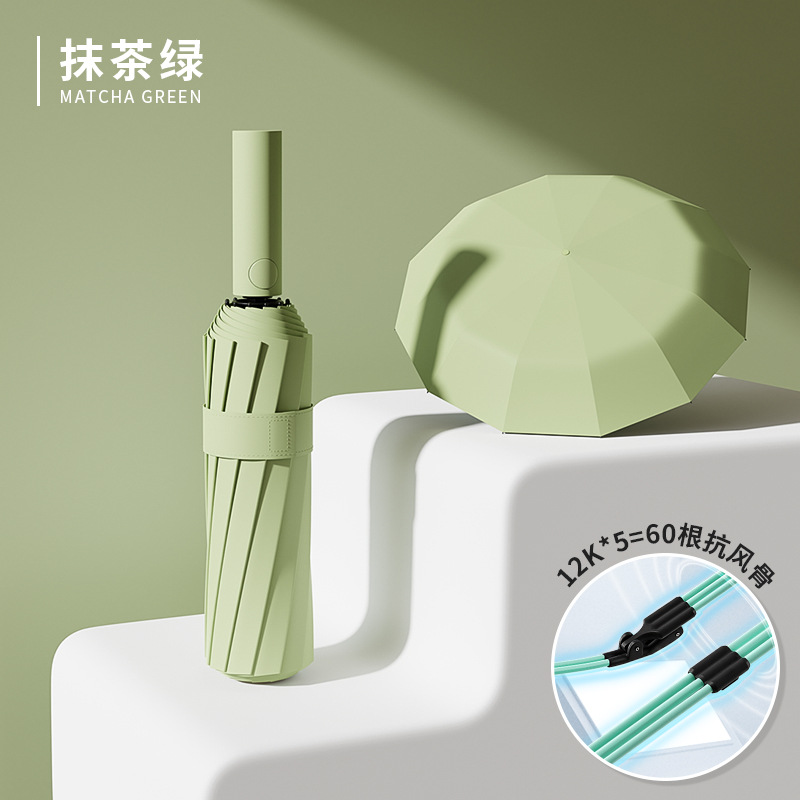 새로운 스타일 간단한 264 뼈 바람 저항하는 강화 3 접는 자동 우산 선 스크린 블랙 고무 코팅 맑고 비 이중 사용 우산