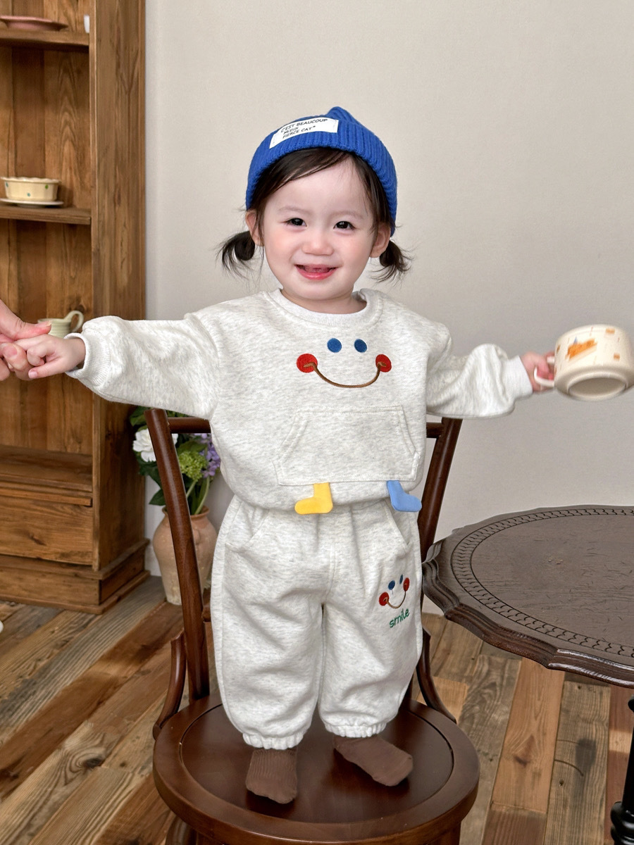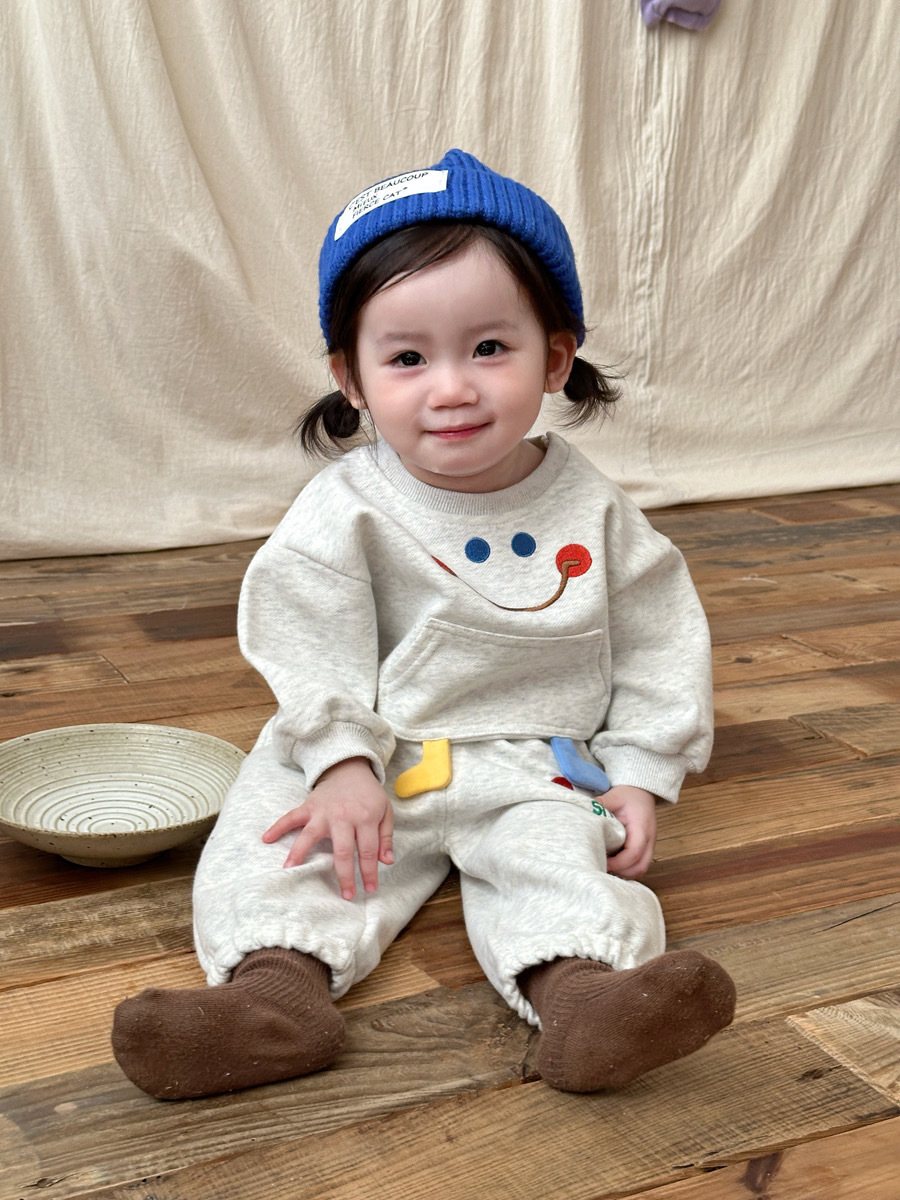 • 회색 웃는 얼굴 정장 봄과 가을 스타일