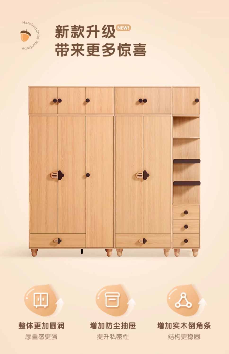 소년과 소녀를위한 단단한 나무 어린이 옷장 현대 옷장 홈 침실 보관 캐비닛 로그 스타일 보관 옷장