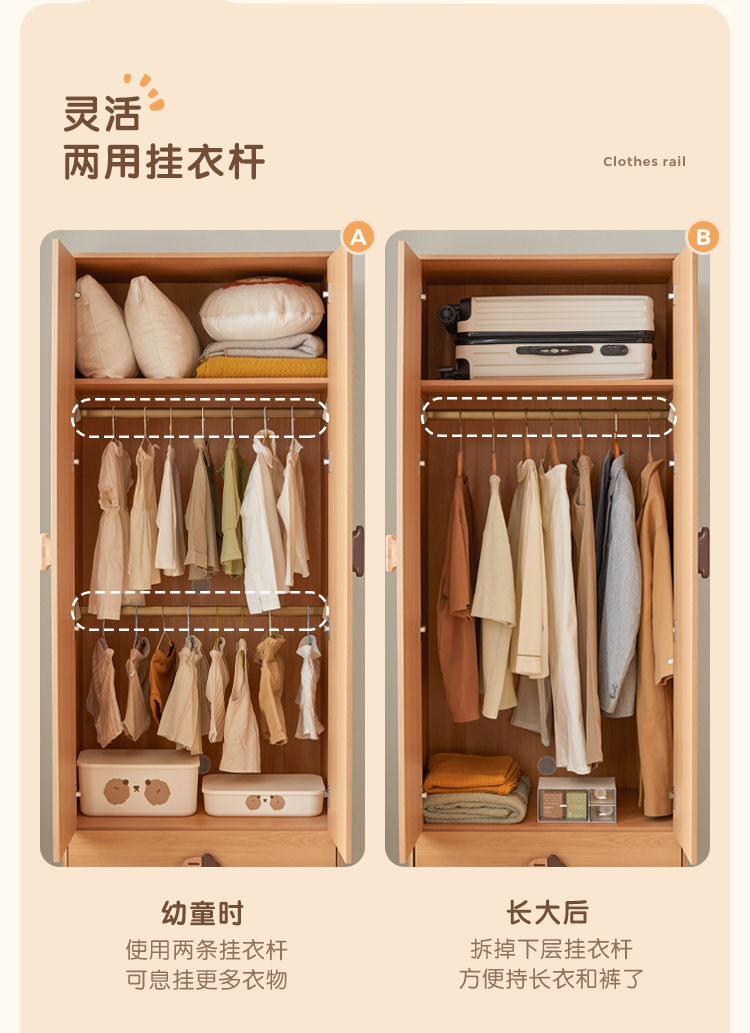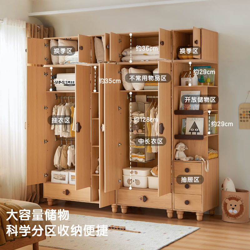 소년과 소녀를위한 단단한 나무 어린이 옷장 현대 옷장 홈 침실 보관 캐비닛 로그 스타일 보관 옷장스토어 가기