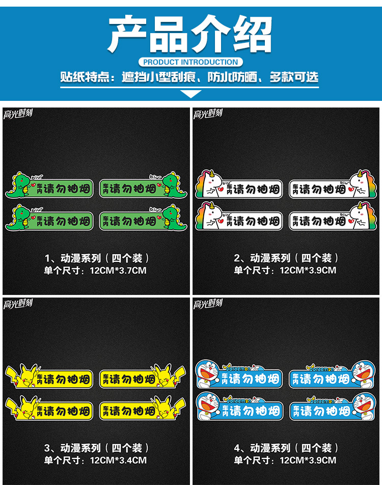 • 도라에몽(흡연하지 마세요) UV 소재, 떨어지지 않는 매끄러운 표면 스티커 4장 세트