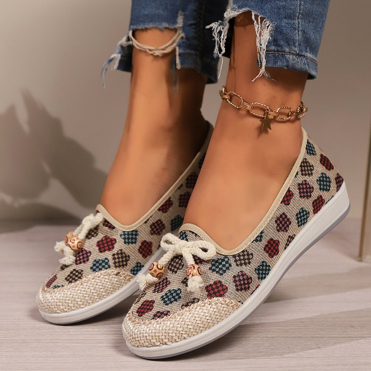 유럽과 미국의 국경 간 어머니 신발 2025 여름 여성의 통기성 슬립-게으른 신발 여성 신발 부드러운 밑바닥 자수 할머니 신발