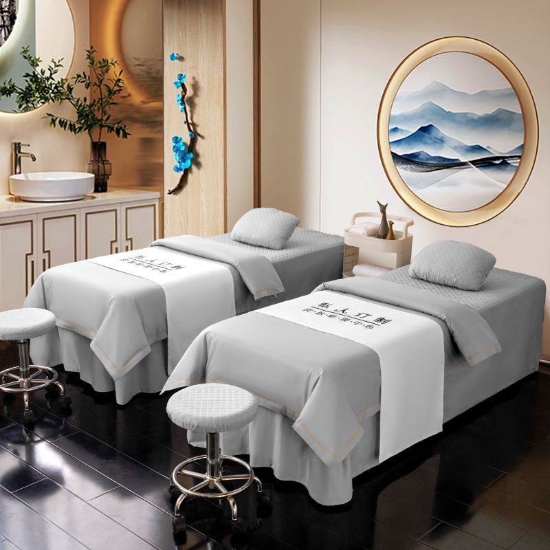 퓨어 코튼 뷰티 침대보 4 피스 세트 하이 엔드 라이트 럭셔리 뷰티 살롱 마사지 요법면 침대보 샴푸 침대 세트 도매